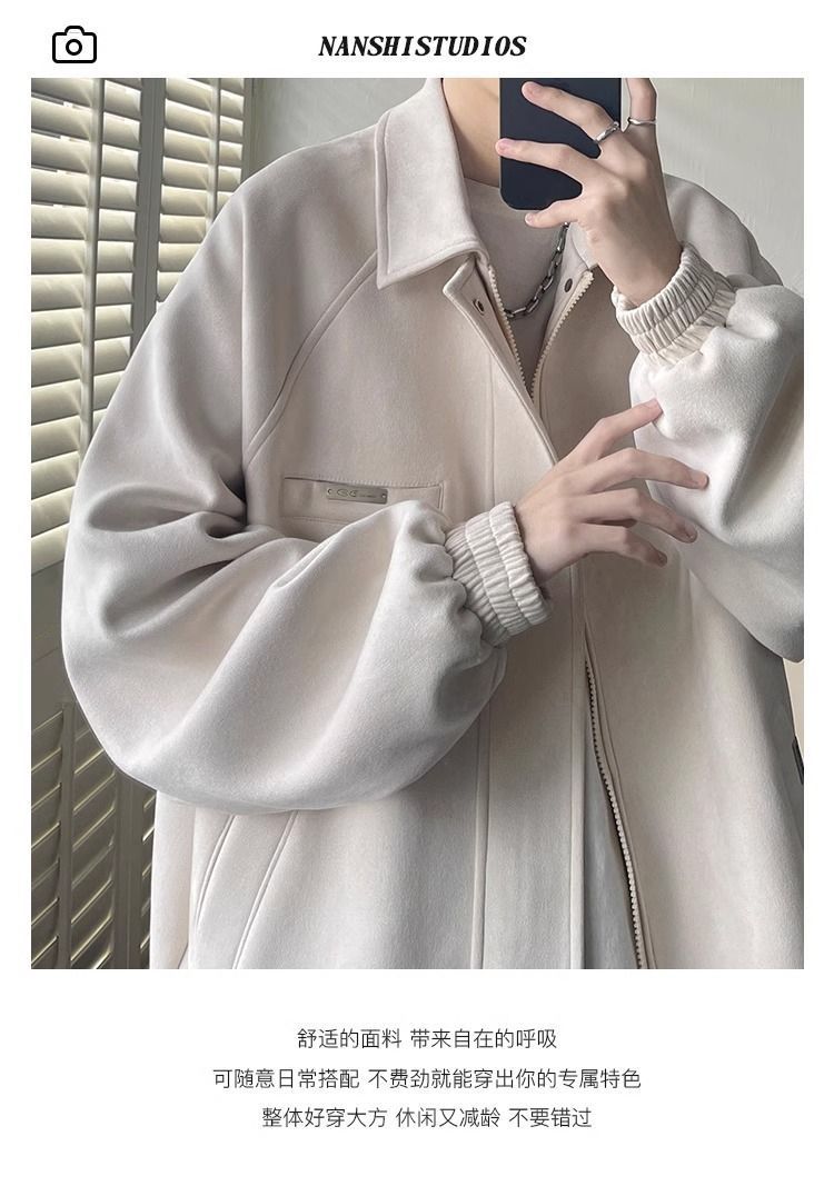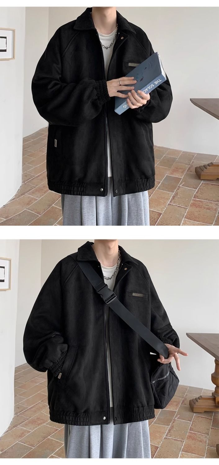 스웨이드 코트 소년 가을과 겨울 하이 엔드 느낌 강아지 슈아이-프라이드 스트리트 트렌디 브랜드 청소년 루즈 캐주얼 옷깃 재킷스토어 가기