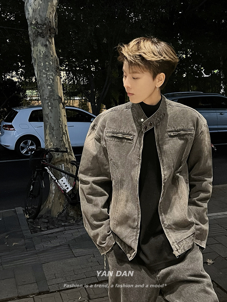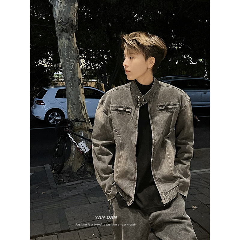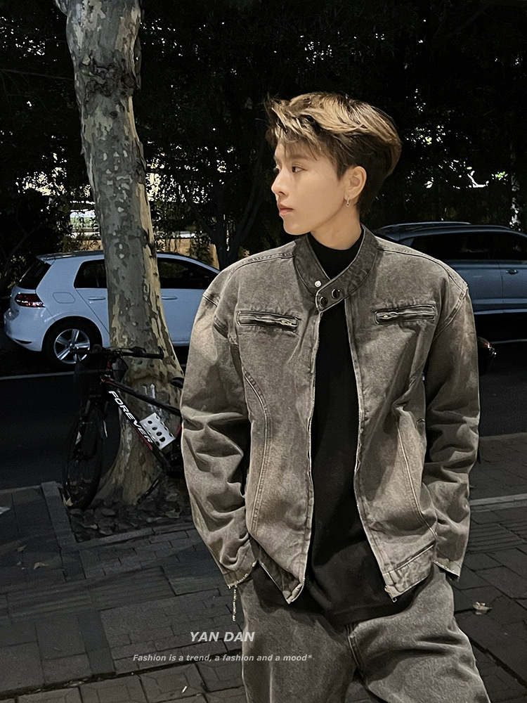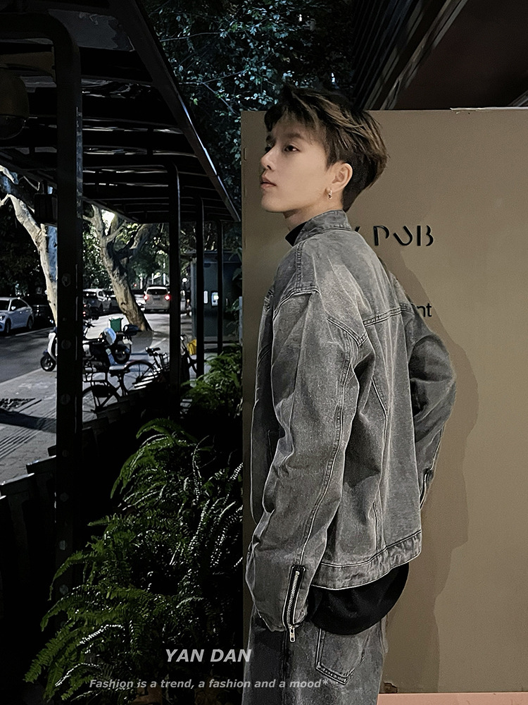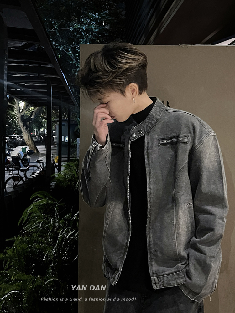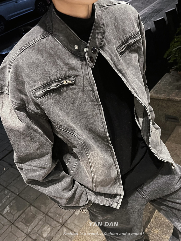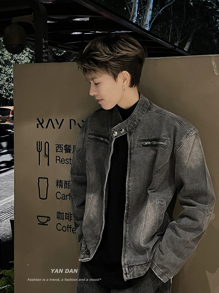 미국 오토바이 데님 재킷 남자의 2024 새로운 지퍼 장식 디자인 틈새 짧은 재킷스토어 가기