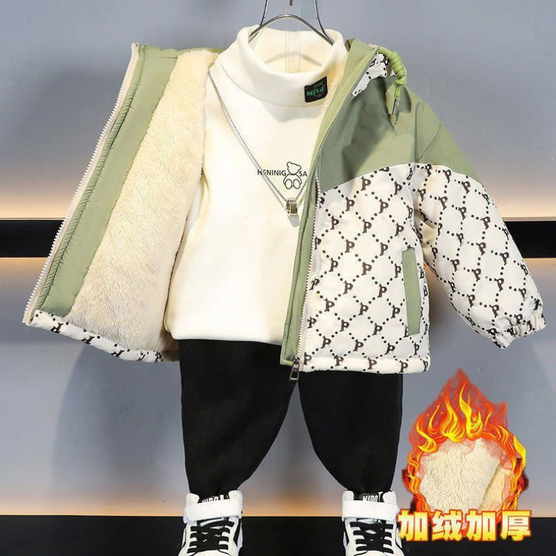 소년 가을 겨울 기모 코트 2024 새로운 어린이 기모 누빔안감 폭발 트렌치 코트 한국식스토어 가기