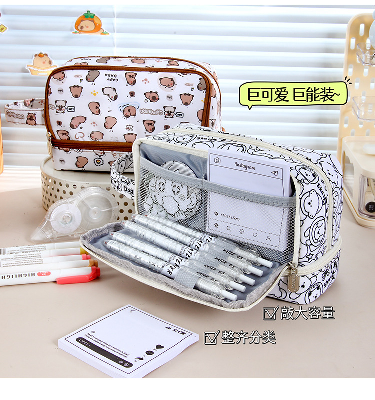 Kapi Barra 연필 케이스 고급 감각 문구 가방 높은 색상 가치 투명 연필 케이스 초등학생을위한 대용량 더러운 저항하는 문구 케이스