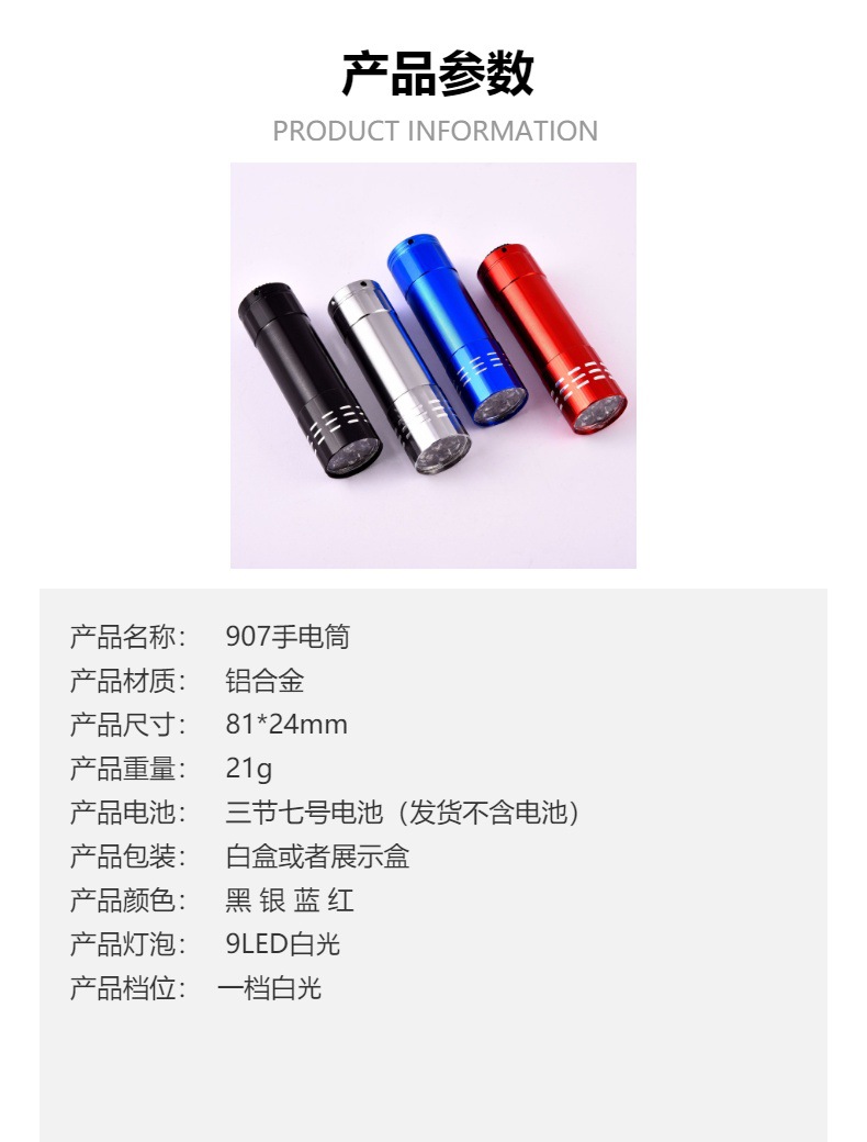 907 슈퍼 밝은 9LED 손전등 미니 손전등 야외 장비 사업 선물 알루미늄 합금 조명 작은 손전등스토어 가기