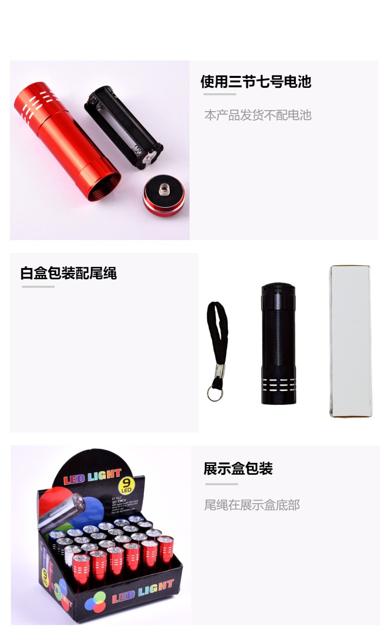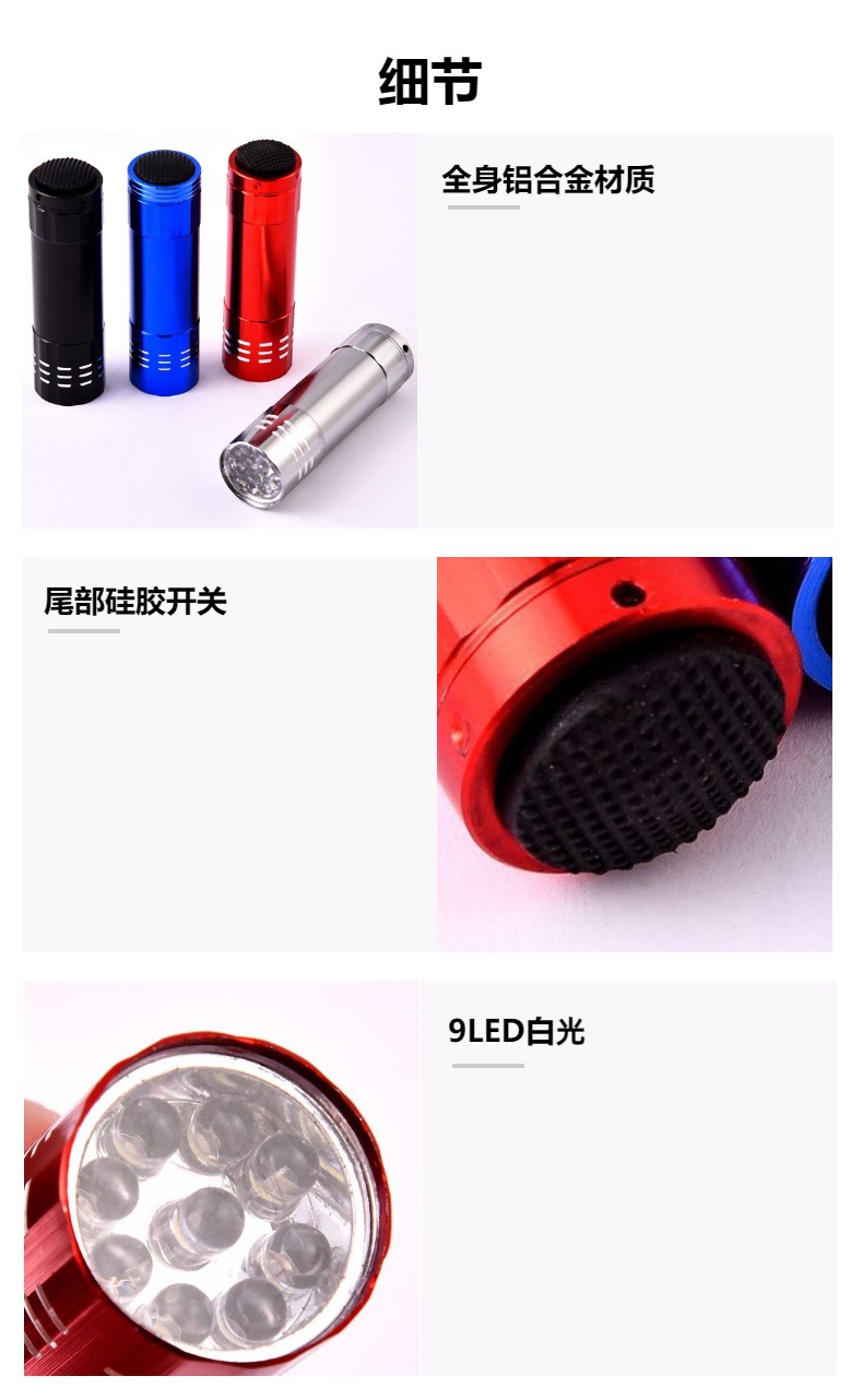 907 슈퍼 밝은 9LED 손전등 미니 손전등 야외 장비 사업 선물 알루미늄 합금 조명 작은 손전등