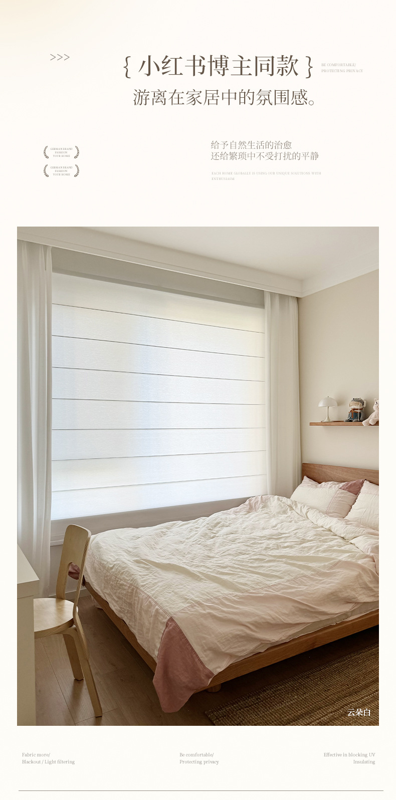 엄선된 전동식 로마 블라인드, 차광 기능, 프렌치 크림 스타일, 어린이방/침실용, 무타공, 모던 심플 커튼스토어 가기
