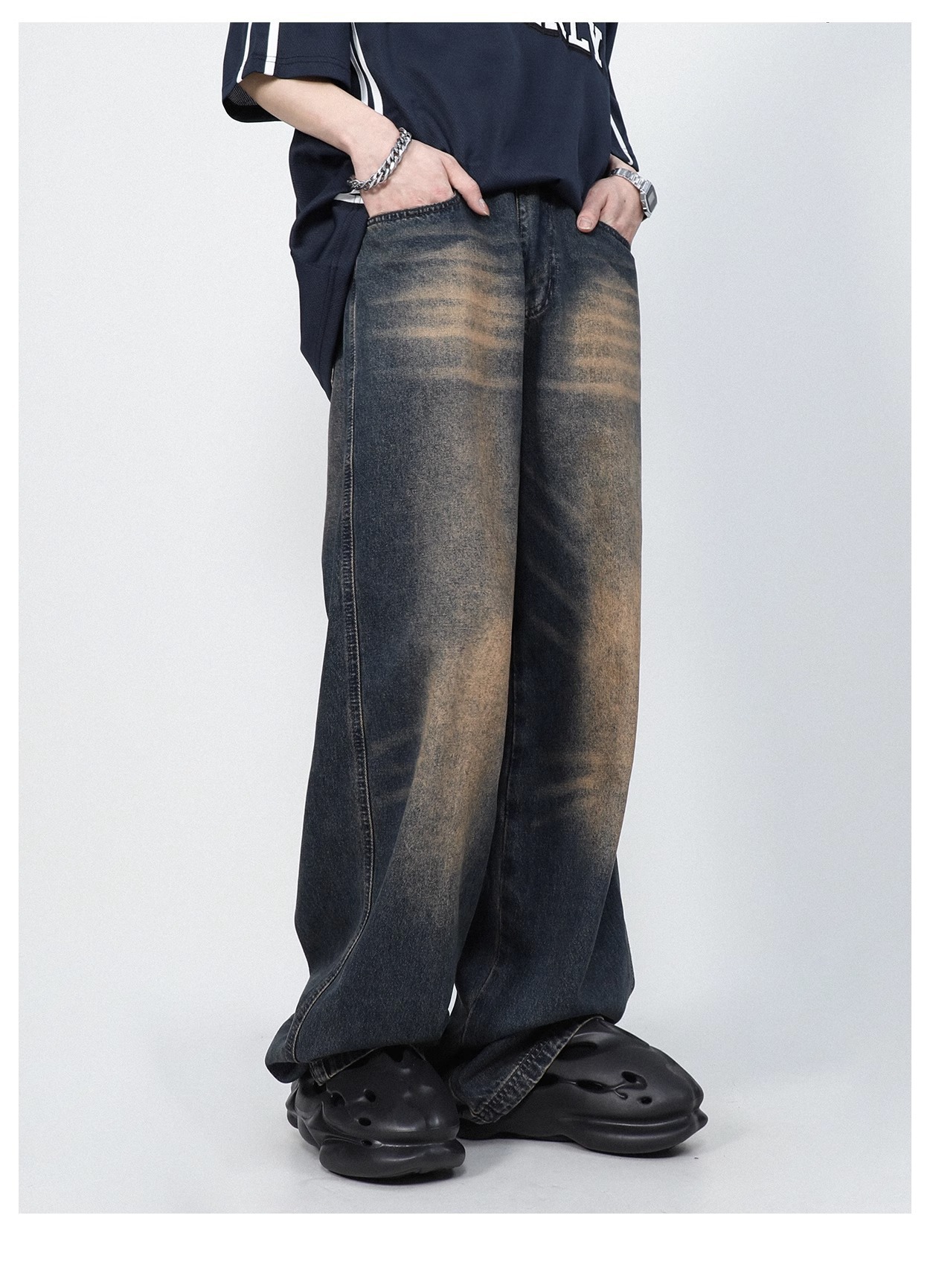 아메리칸 스타일 하이 엔드 센스 스트레이트 캐주얼 청바지 남성 봄과 가을 새로운 하이 스트리트 Ins 유행 브랜드 세탁 빈티지 바지스토어 가기