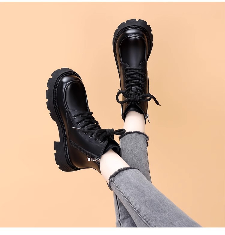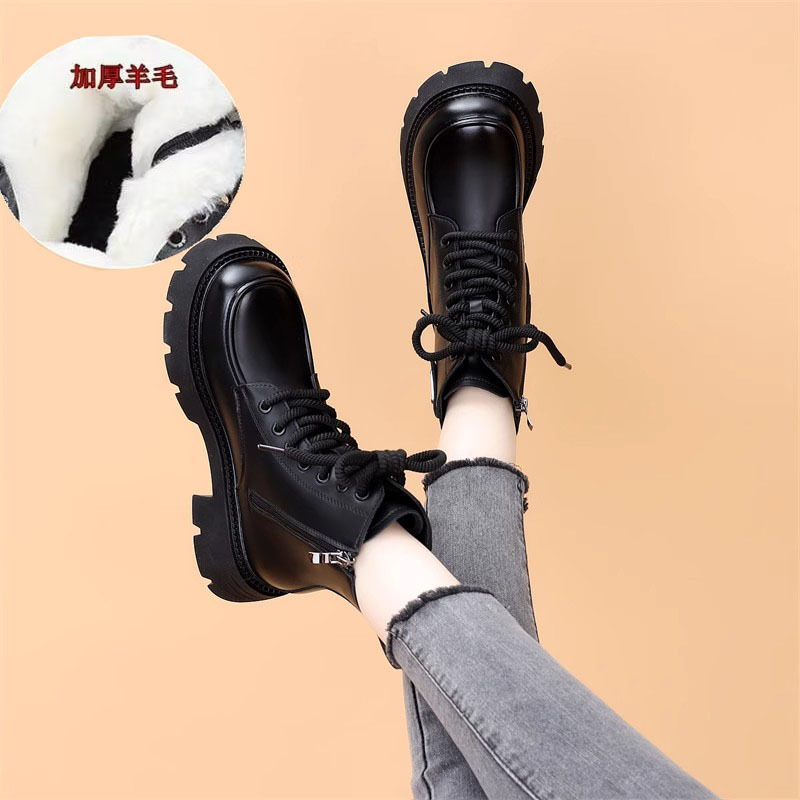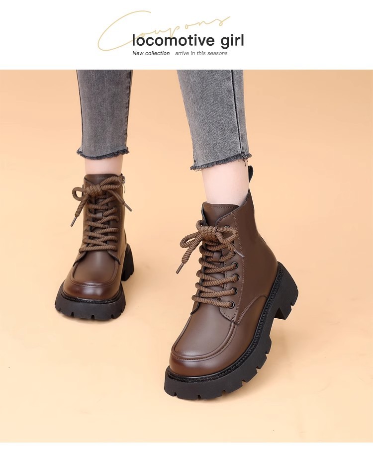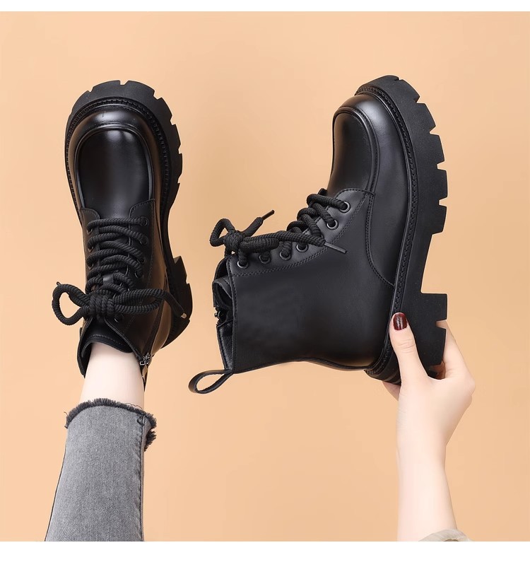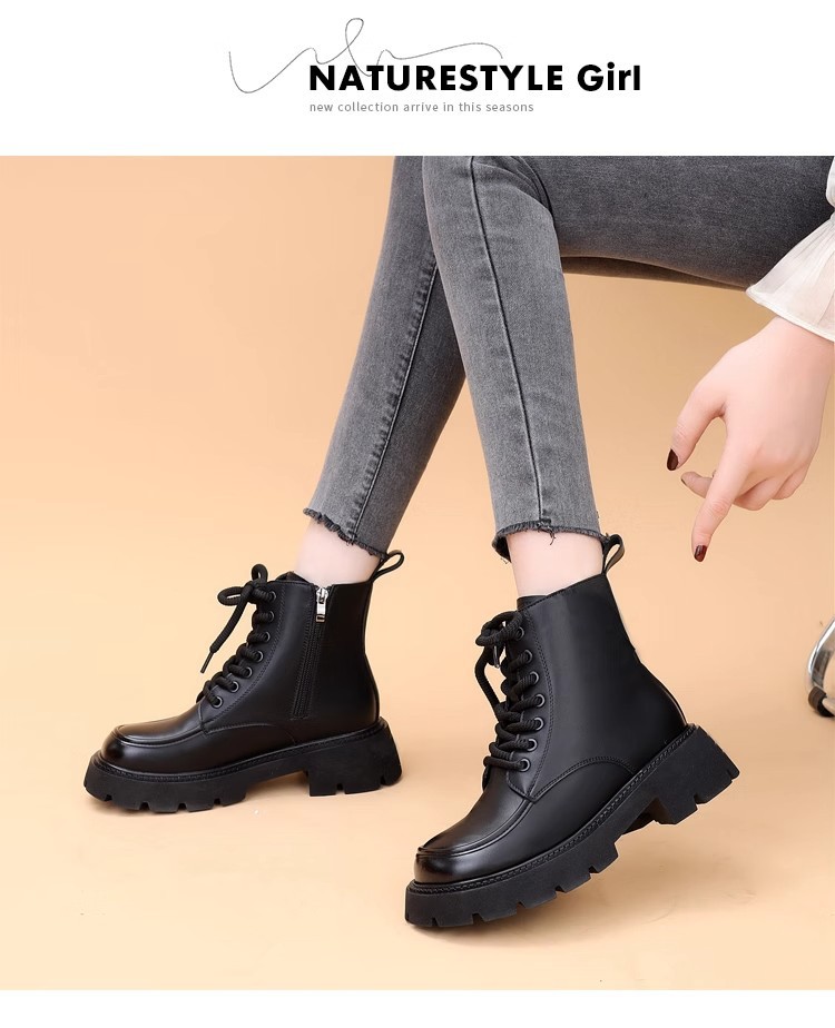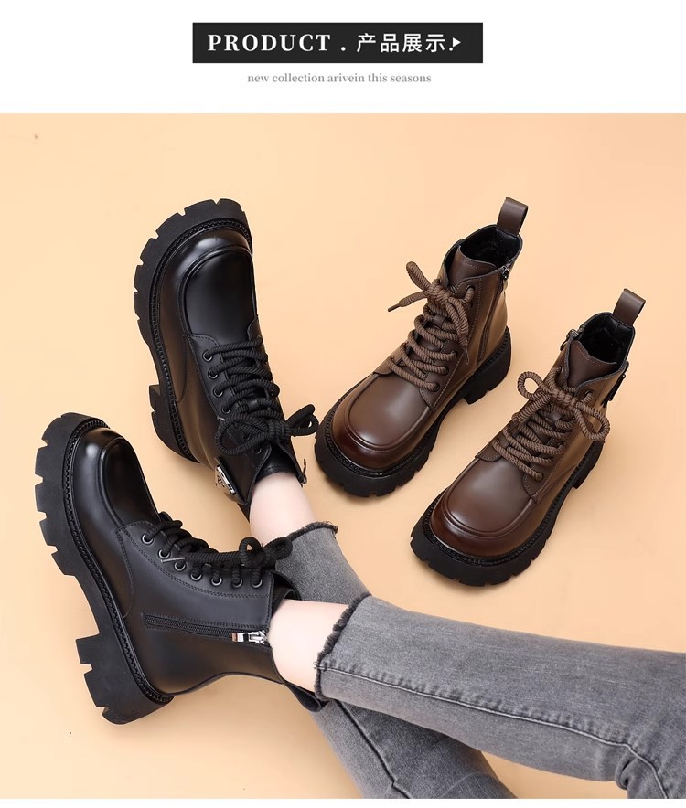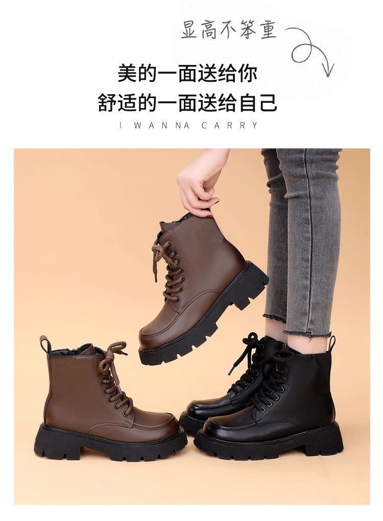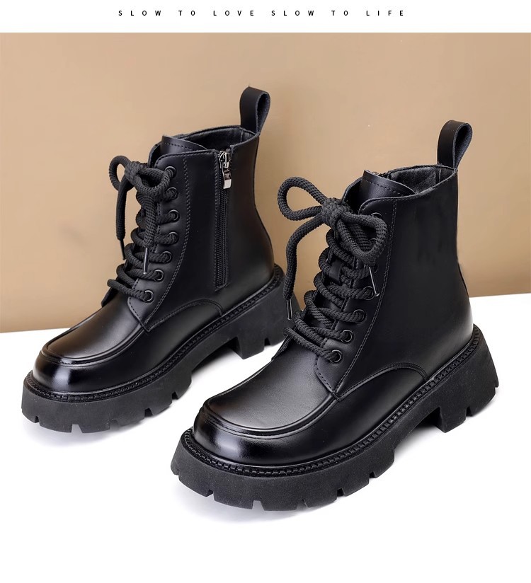 여성용 마틴 부츠, 두꺼운 밑창, 가을 겨울용, 다용도, 플리스 안감, 2025년 신상, 영국 스타일, 진짜 부드러운 가죽, 키 작은 분들을 위한 키높이 부츠스토어 가기