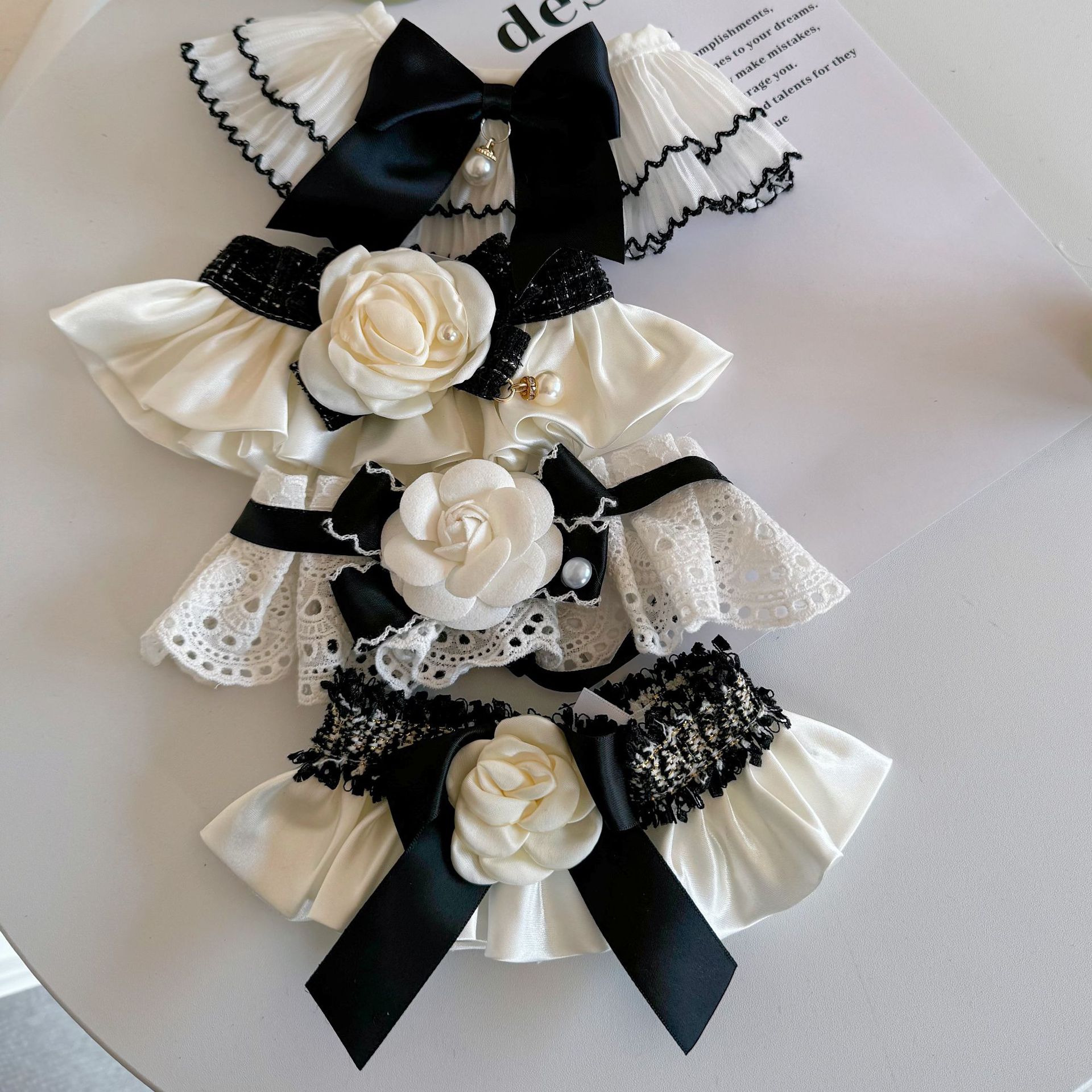 Xiaoxiang 스타일 애완 동물 칼라 동백 고양이 개 타액 스카프 lolita 인형 앞치마