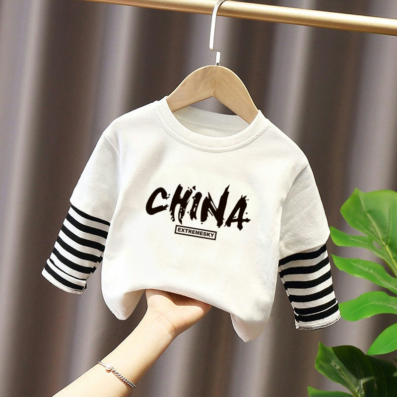 G2328#春秋装百搭儿童T恤打底衫男童纯棉长袖t恤女童白色圆领上衣