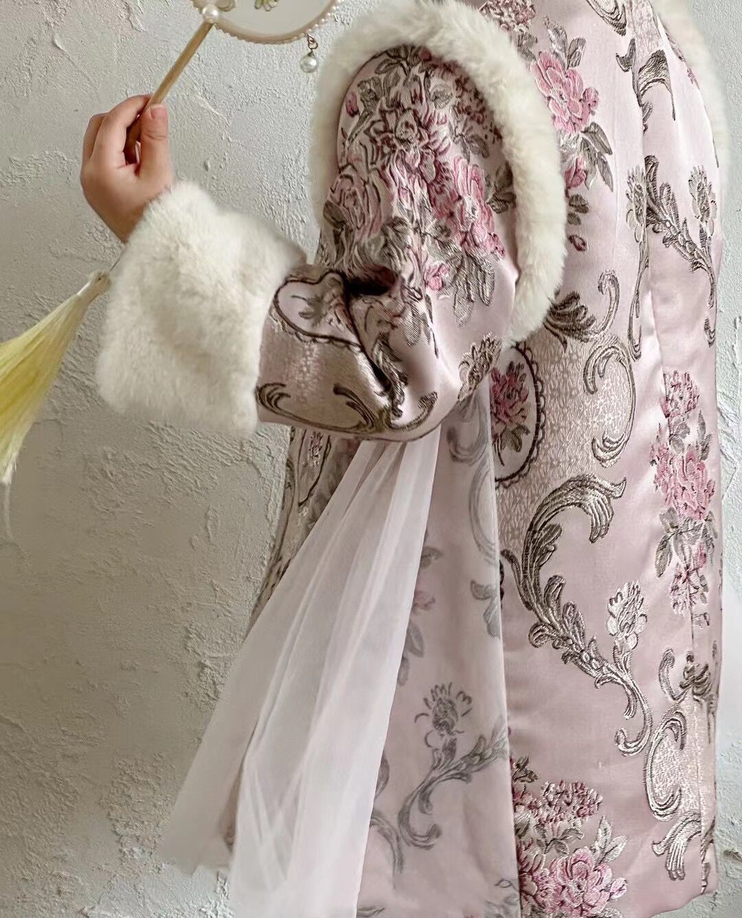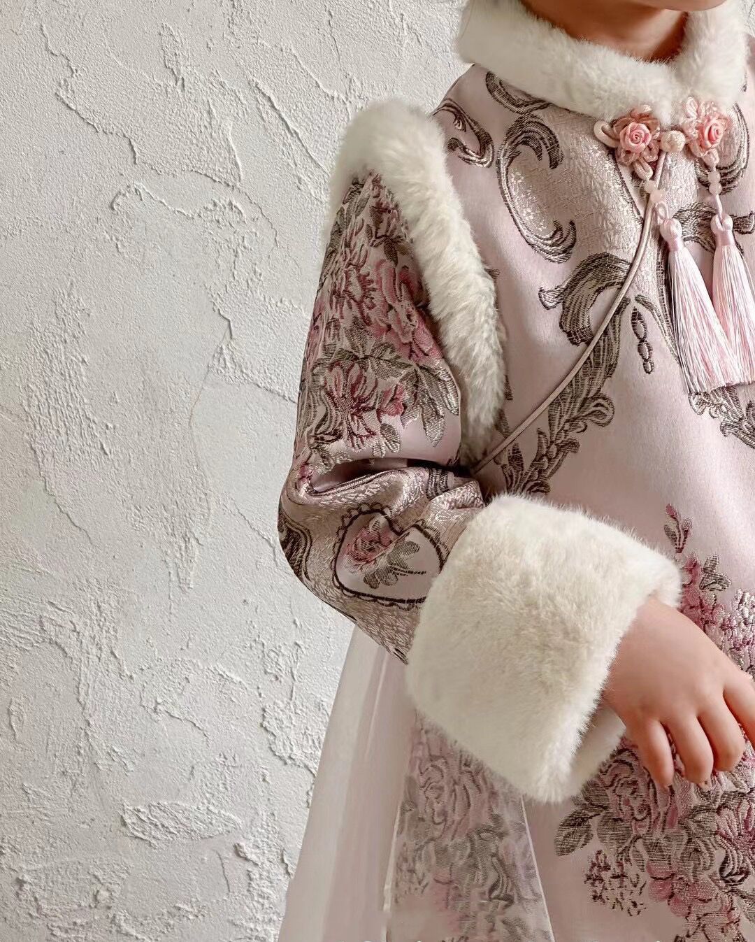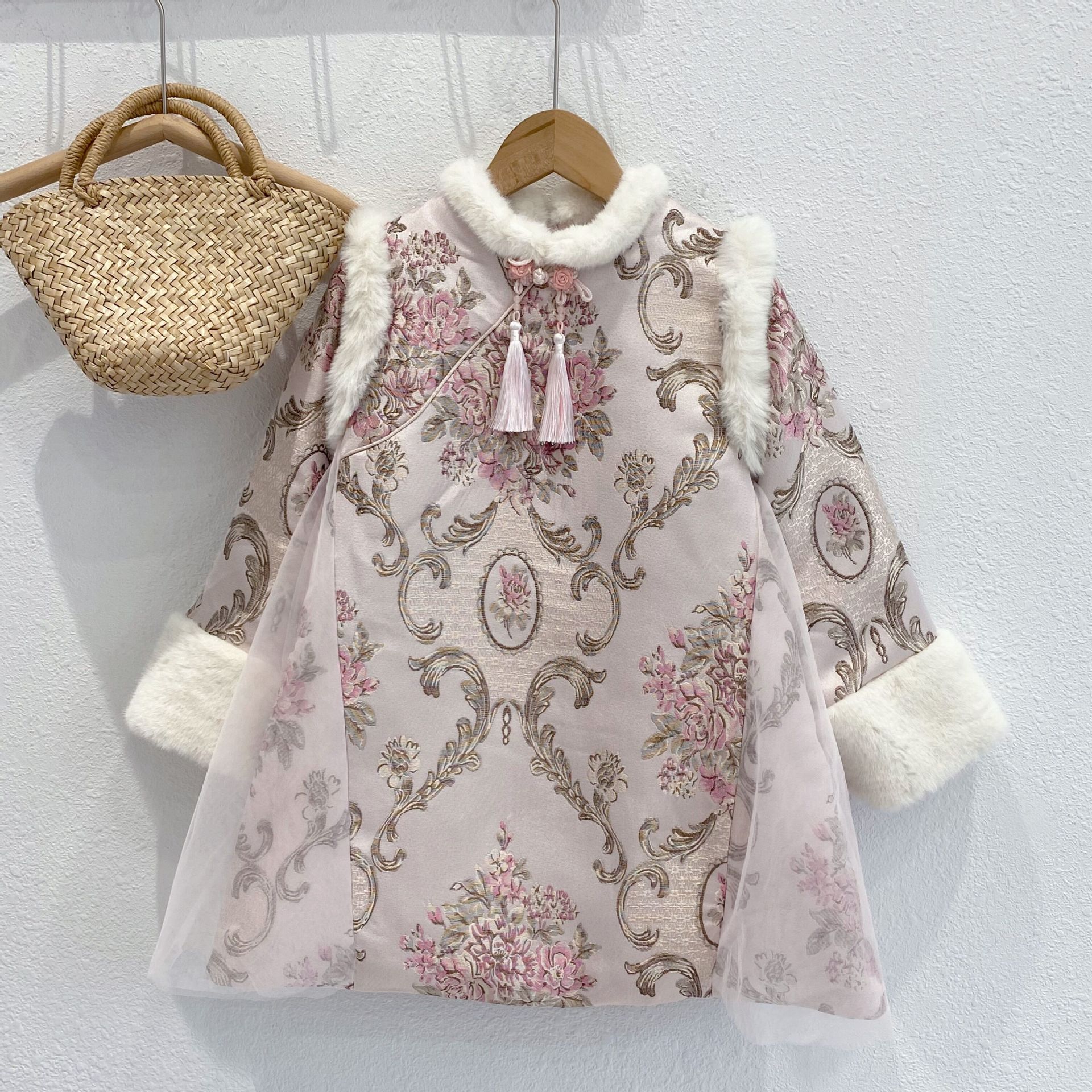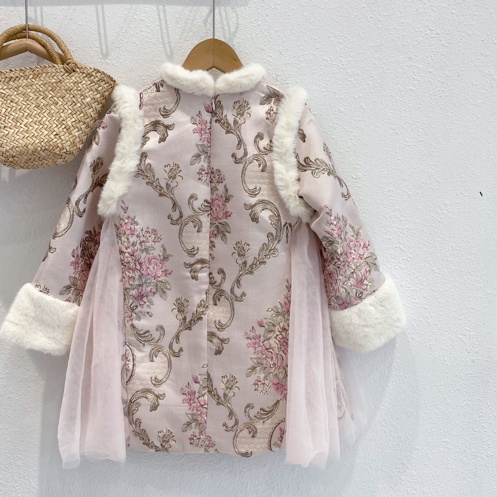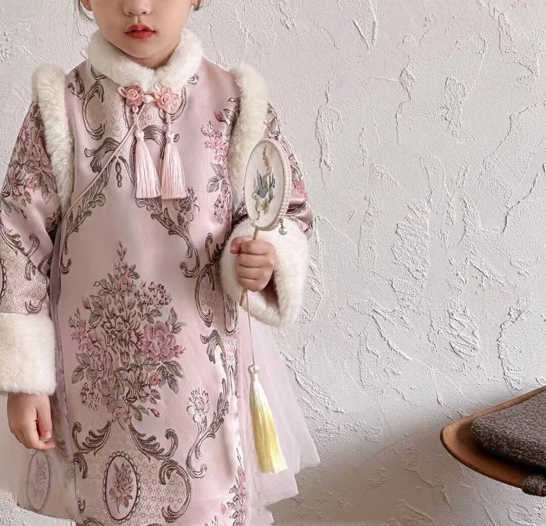 2024 년 겨울 새 소녀면 수정 청삼 원피스 한푸 신년 인사복 소녀 중국 스타일 신년 공주 원피스스토어 가기