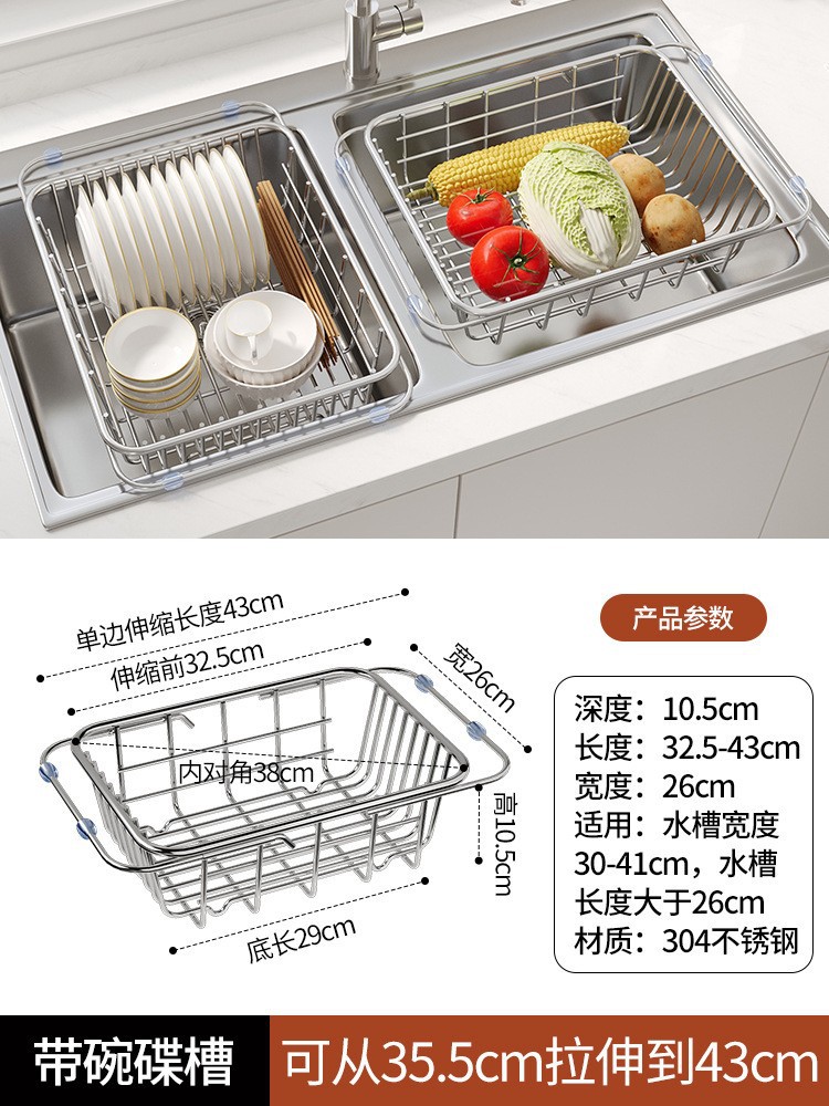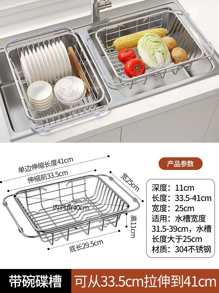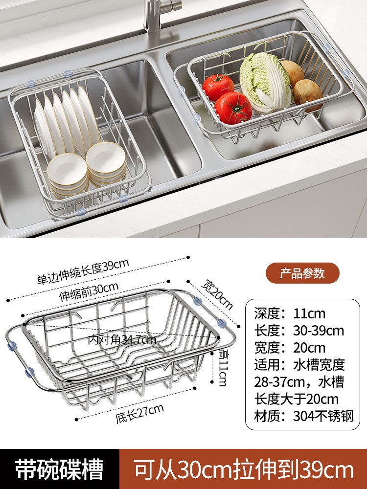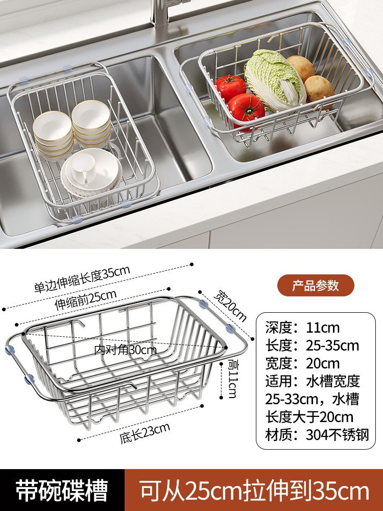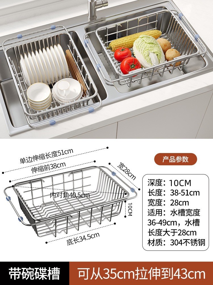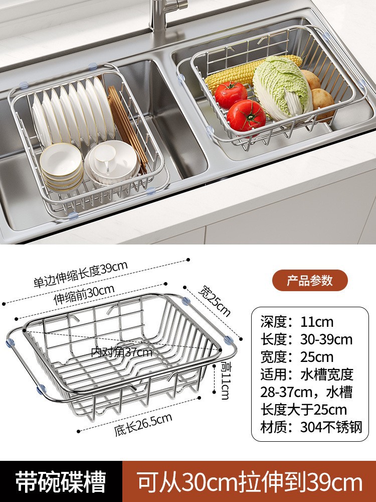 싱크 드레인 바구니 스테인레스 스틸 싱크 싱크 싱크 분지 텔레스코픽 주방 스토리지 랙 접시 스토리지 랙 주방 용품