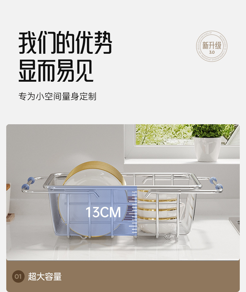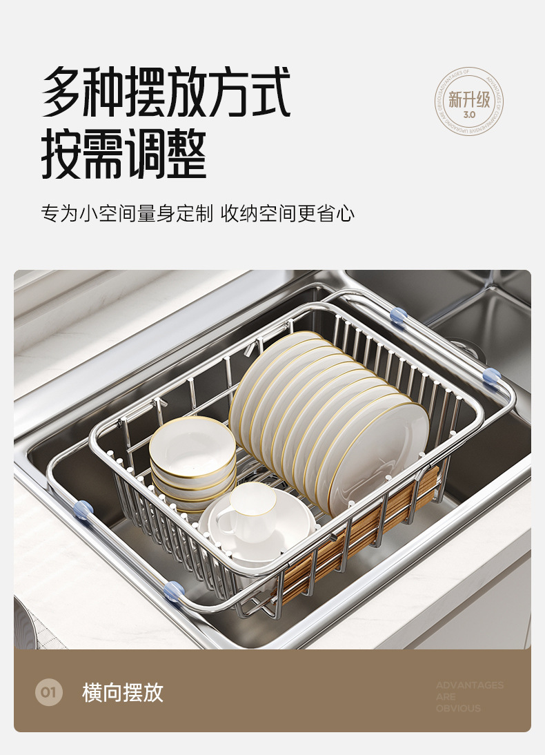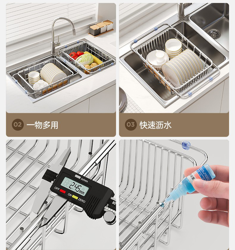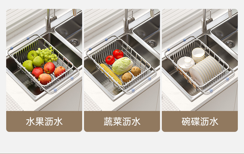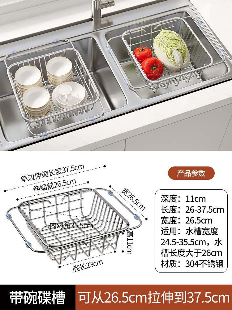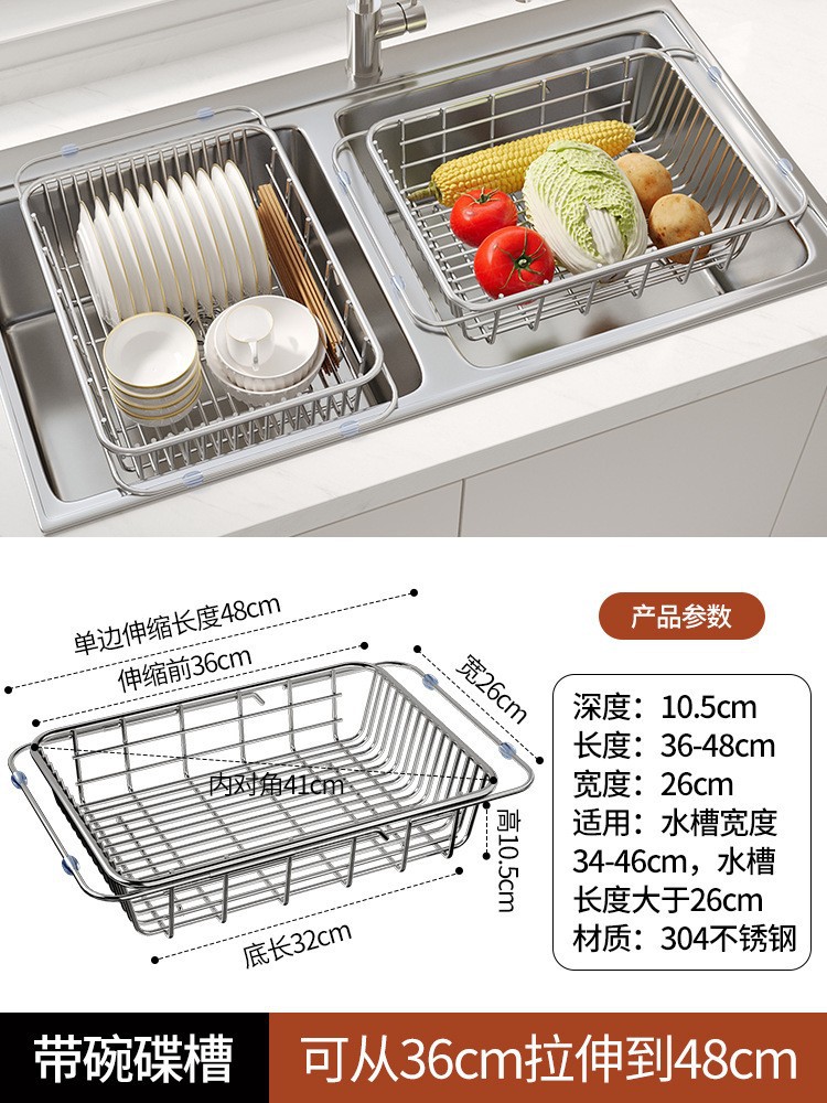 싱크 드레인 바구니 스테인레스 스틸 싱크 싱크 싱크 분지 텔레스코픽 주방 스토리지 랙 접시 스토리지 랙 주방 용품