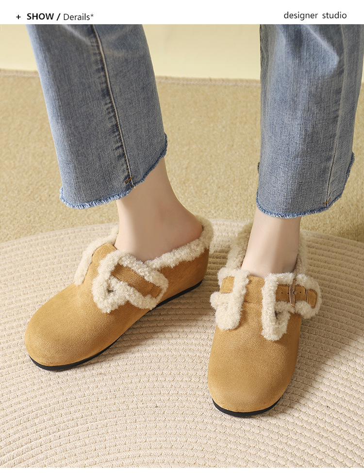 Sanxi Tongyi 내부 강화 조개 신발 여성의 2024 새로운 스타일 Baotou 하프 슬리퍼 작은 게으른 한 페달 두꺼운 단독