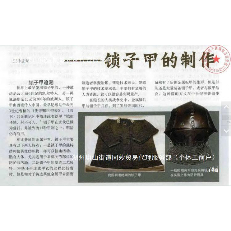 本店不做成品的锁子铠甲,只提供制作环。网上下载的做作说明供您参考。