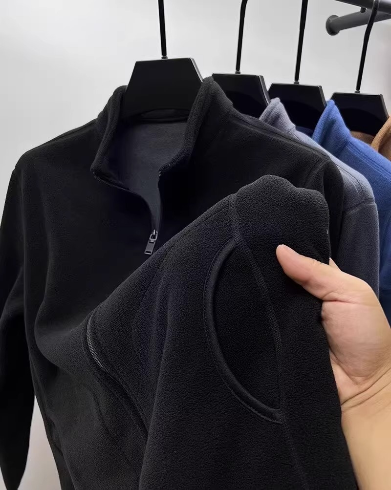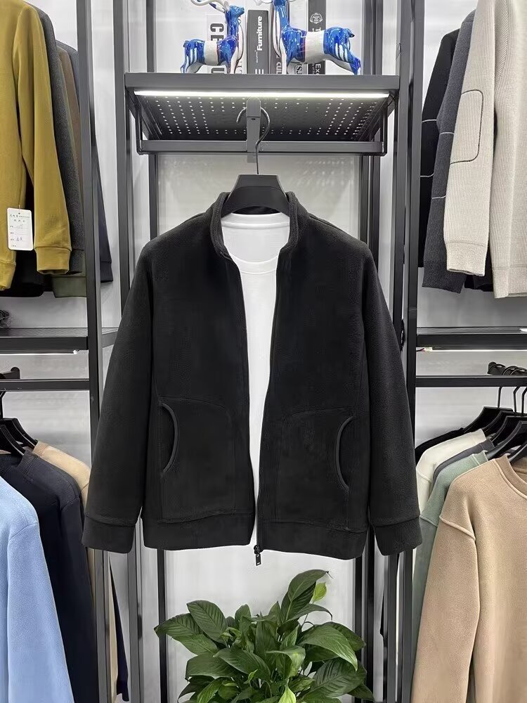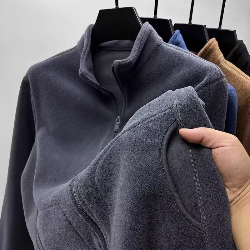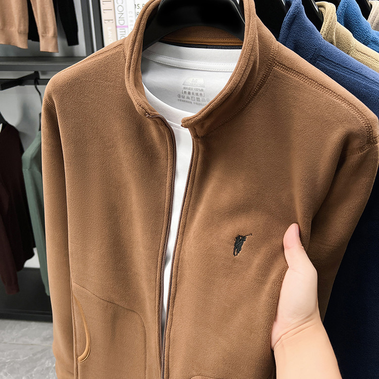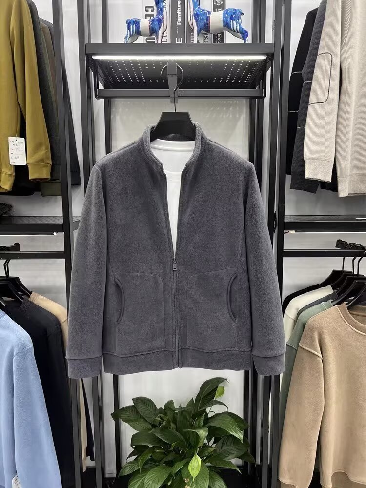 양털 남자 양면 폴라 양털 솔리드 컬러 카디건 스웨터 남자 겨울 따뜻한 캐주얼 칼라 재킷 코트