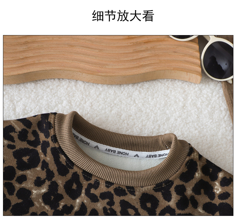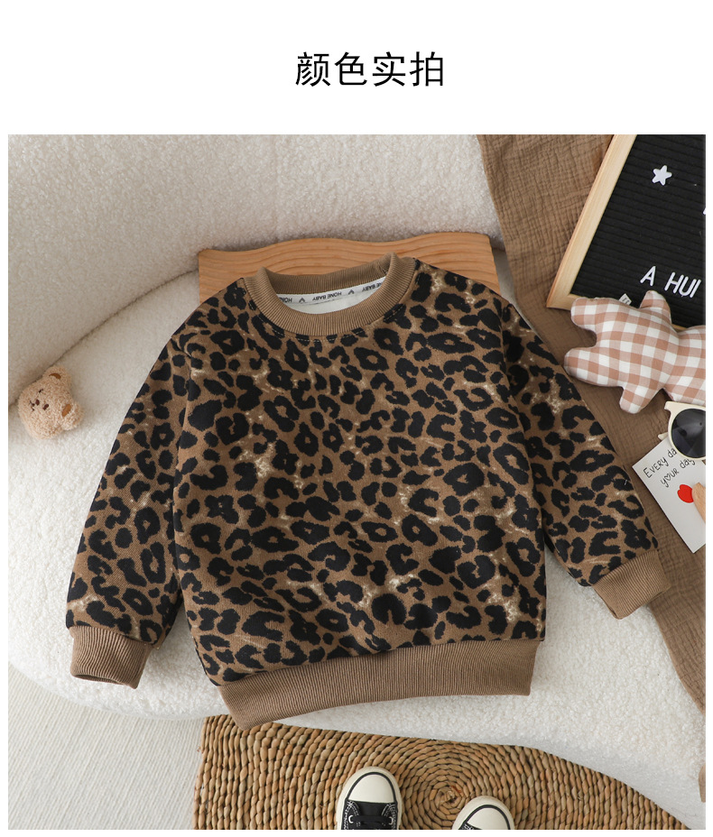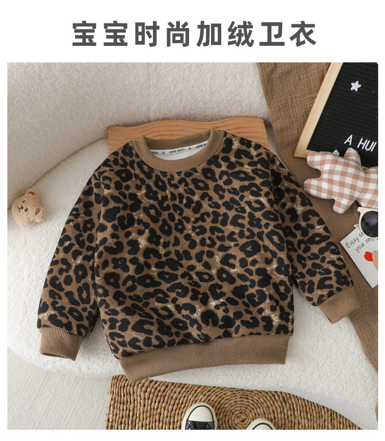 레오파드 무늬 새로운 둥근 목 풀오버 기모 스웨터 가을과 겨울 아기 겨울 두꺼운 따뜻한 옷은 머리카락 세대를 지원합니다.스토어 가기