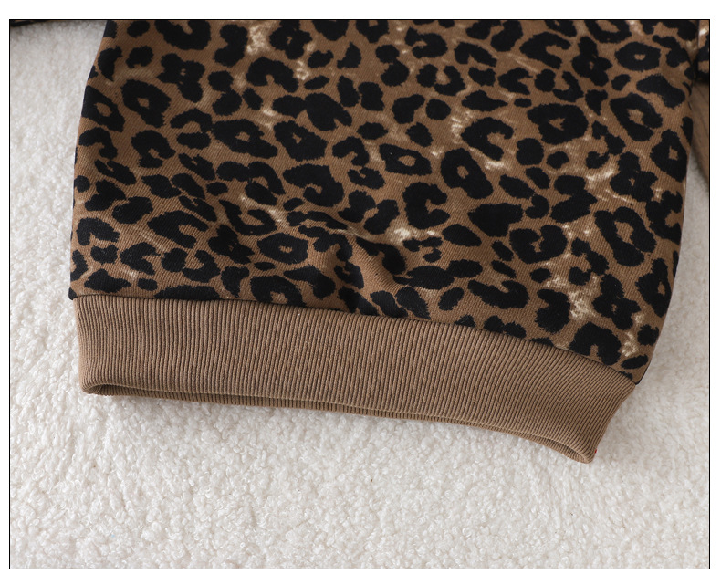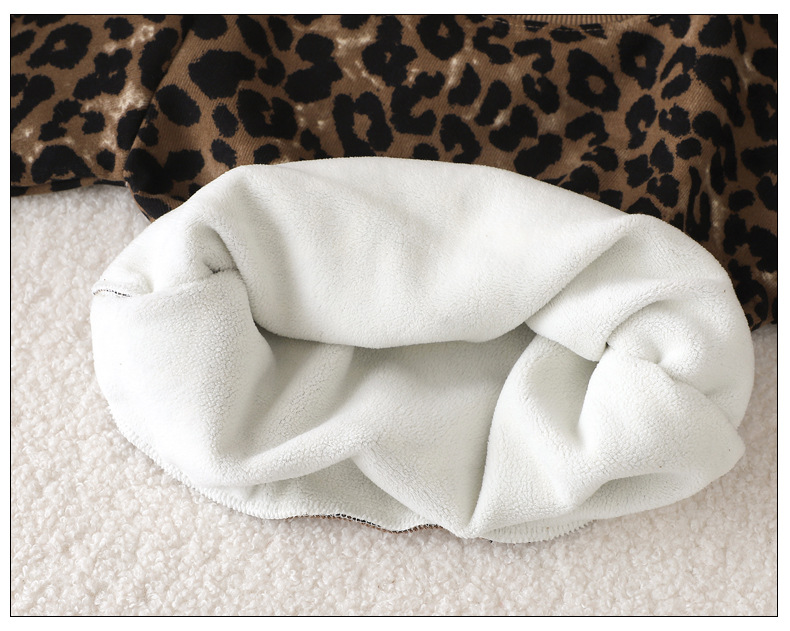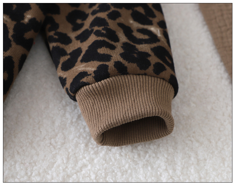 레오파드 무늬 새로운 둥근 목 풀오버 기모 스웨터 가을과 겨울 아기 겨울 두꺼운 따뜻한 옷은 머리카락 세대를 지원합니다.