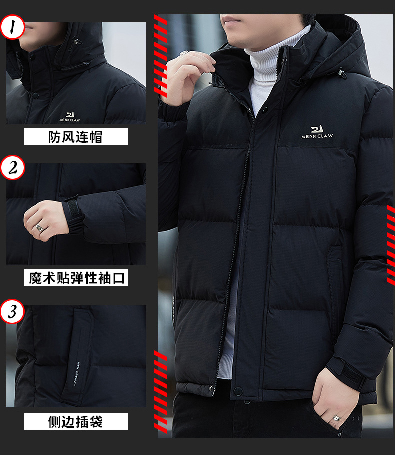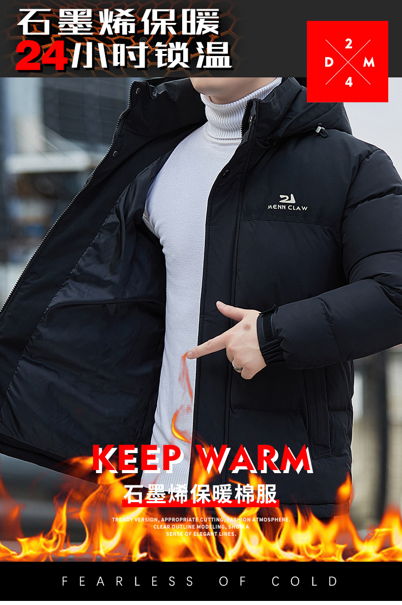 그래 핀 코튼 패딩 코트 남성용 겨울 새로운 두꺼운 따뜻한 후드 컬러 매칭 코튼 패딩 재킷 겨울 의류 방한면 패딩 재킷 코트 남성용스토어 가기