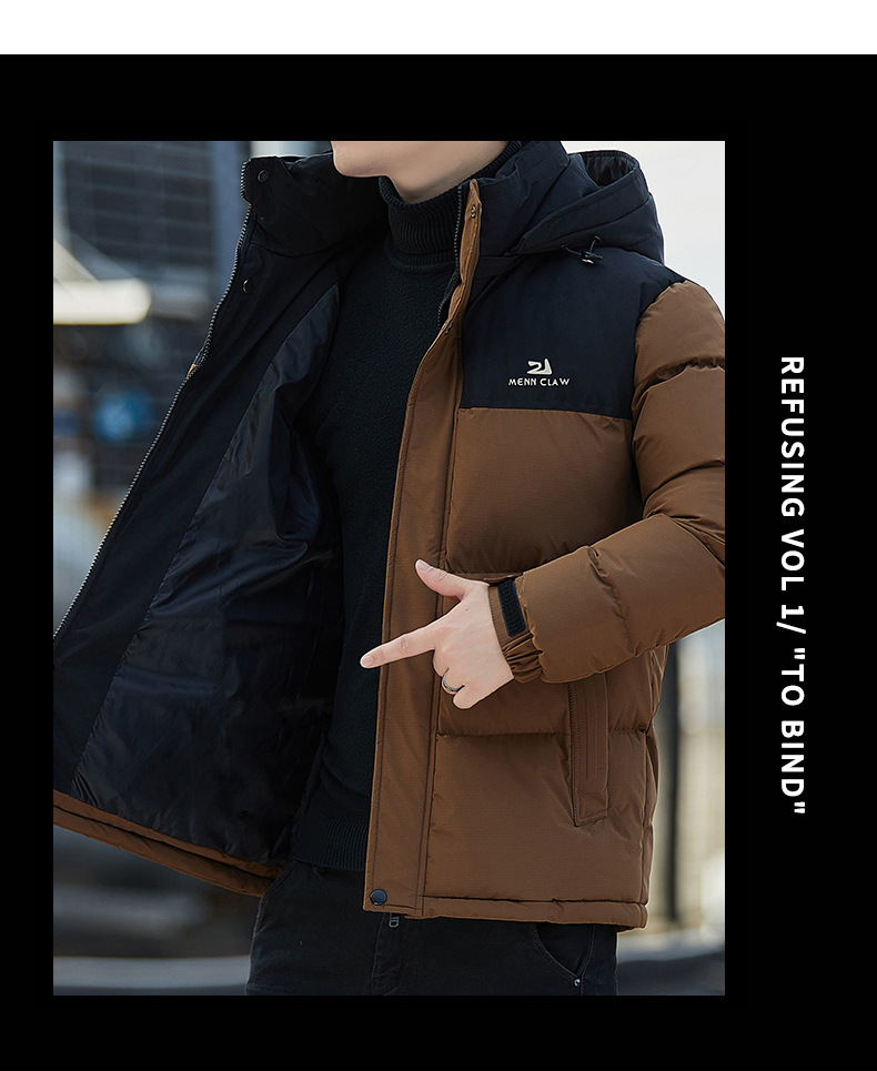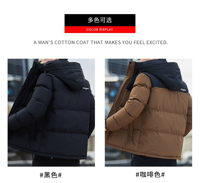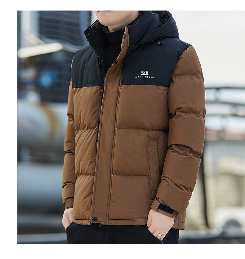 그래 핀 코튼 패딩 코트 남성용 겨울 새로운 두꺼운 따뜻한 후드 컬러 매칭 코튼 패딩 재킷 겨울 의류 방한면 패딩 재킷 코트 남성용