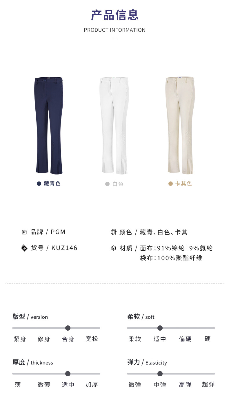 PGM 골프 바지 여자 가을과 겨울 슬림 핏 슬리밍 바지 새로운 도착 의류 주름 바지 높은 허리 빠른 건조 여성용 바지스토어 가기
