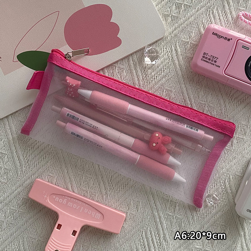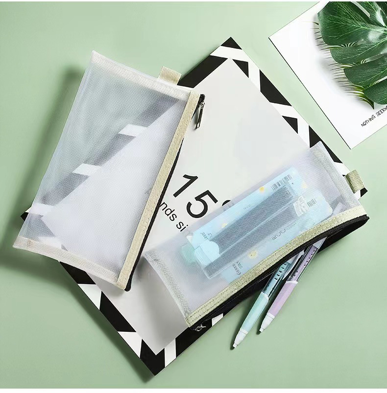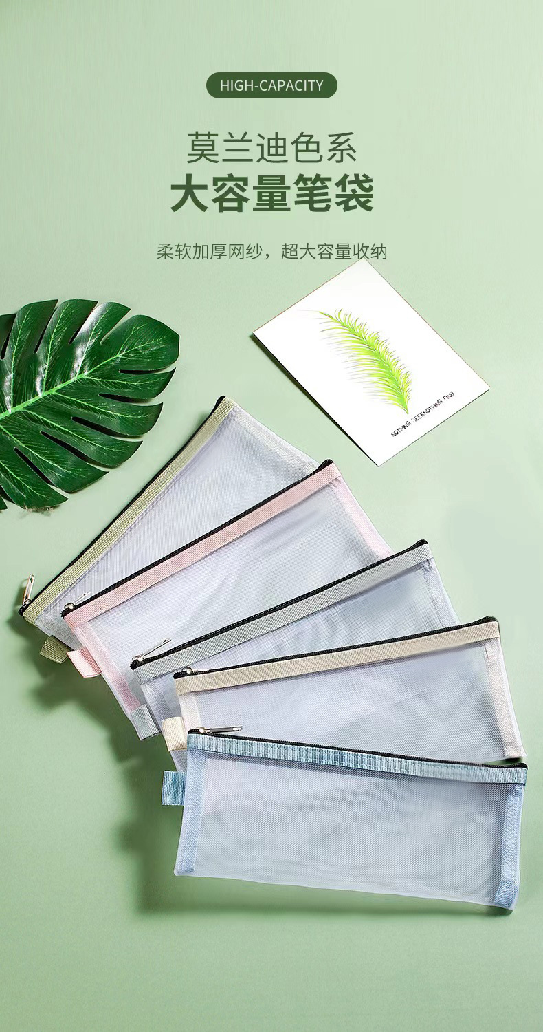 오염 방지 문구 가방, 귀엽고 심플한 스타일, 멋진 디자인, 대용량, 초등학생용 메쉬 필통, 로고 인쇄 가능