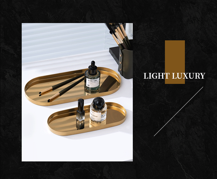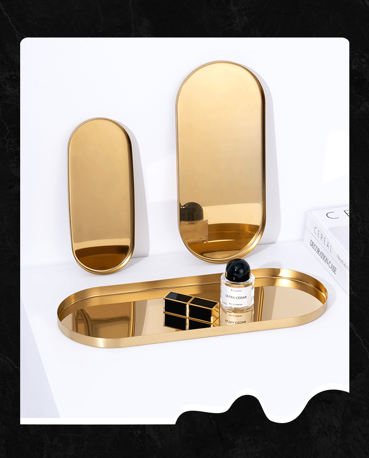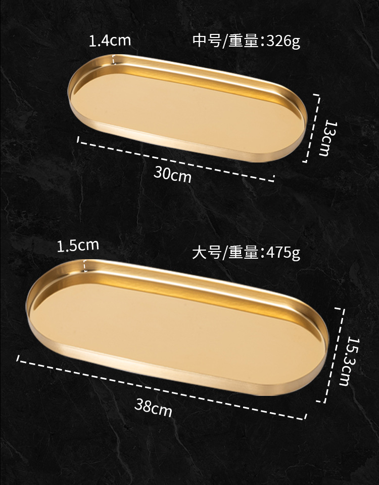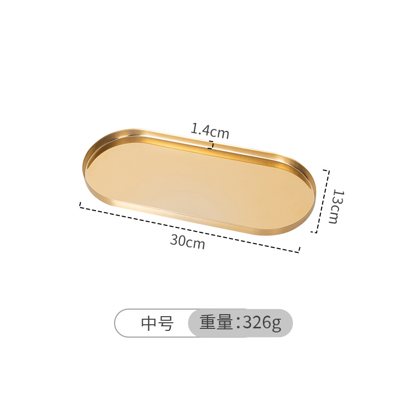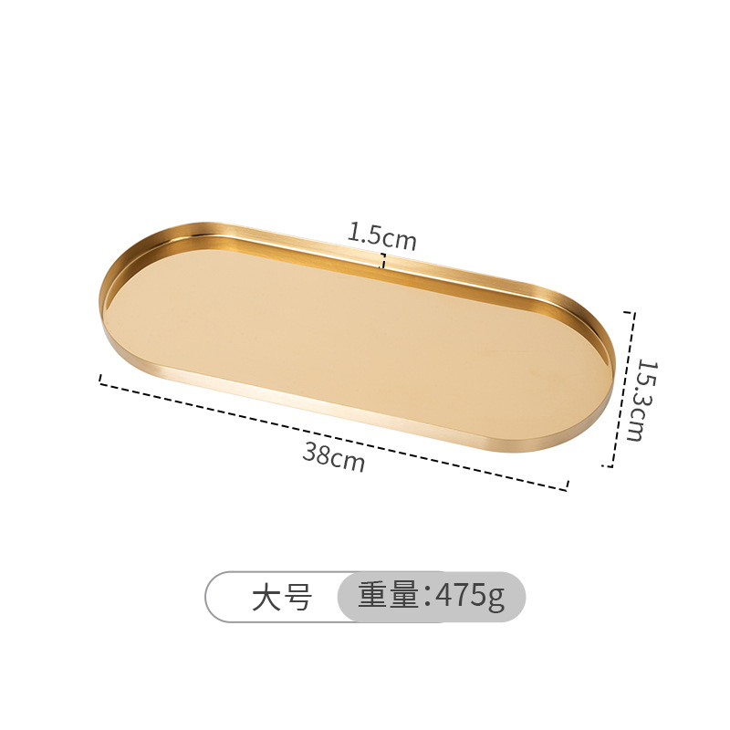 두꺼운 스테인레스 스틸 트레이 스트레이트 에지 타원형 디스크 황금 현대 아로마 테라피 트레이 보석 화장품 저장 트레이스토어 가기