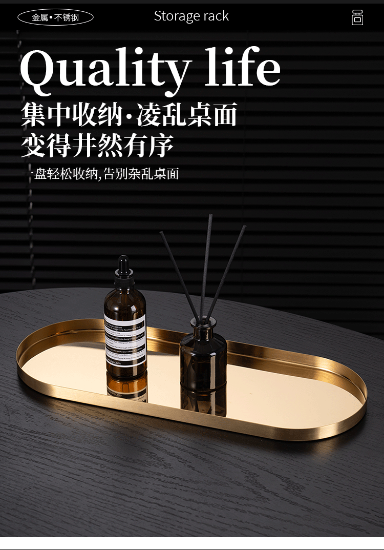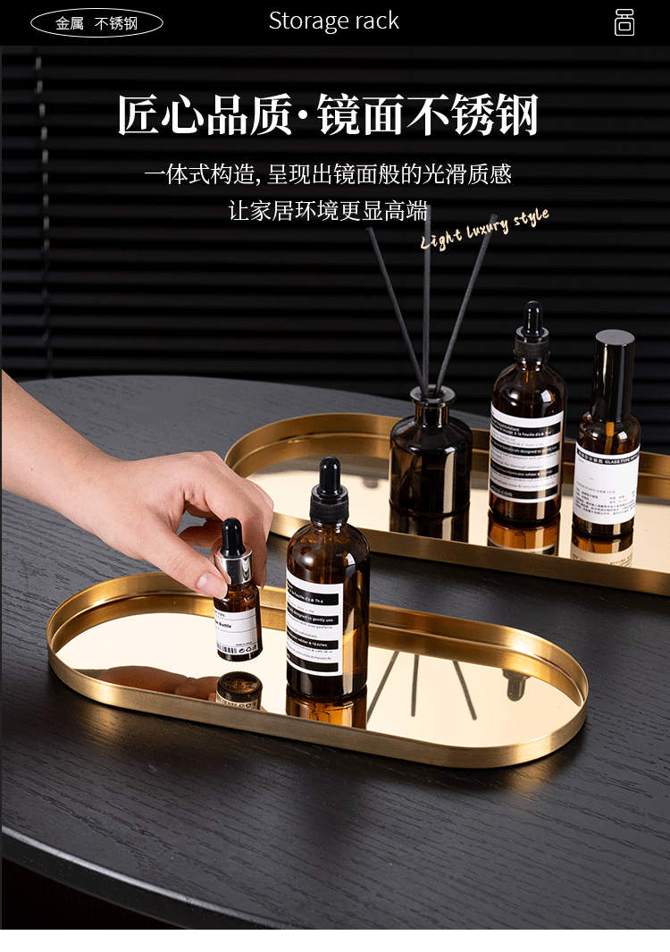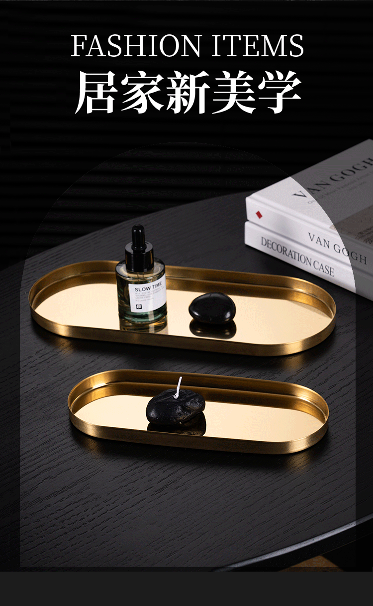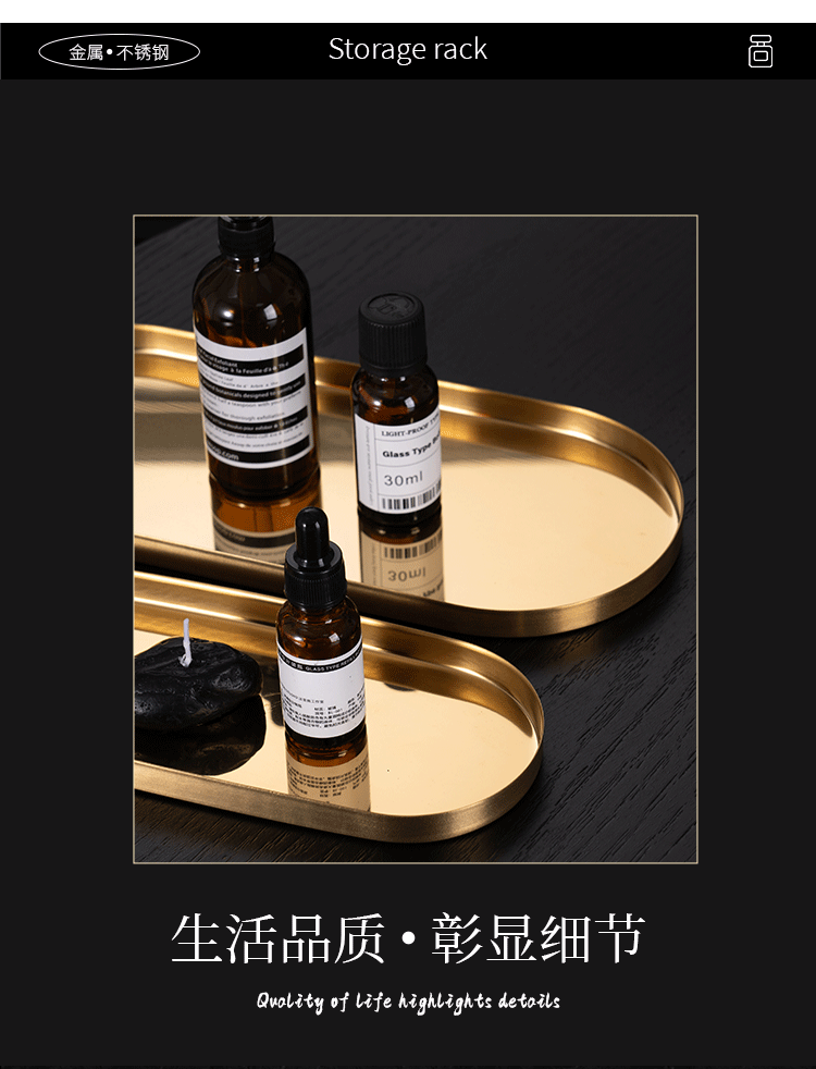 두꺼운 스테인레스 스틸 트레이 스트레이트 에지 타원형 디스크 황금 현대 아로마 테라피 트레이 보석 화장품 저장 트레이스토어 가기
