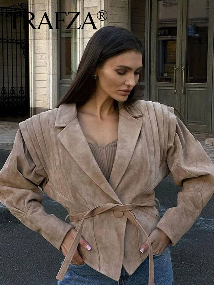 해외 아마존 가을 인기상품 유럽 및 미국 여성복 허리끈 스웨이드 슬림핏 재킷 여성용