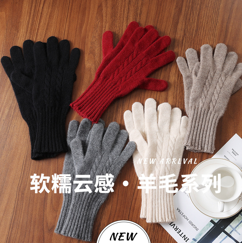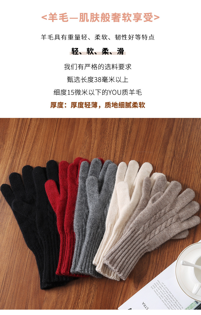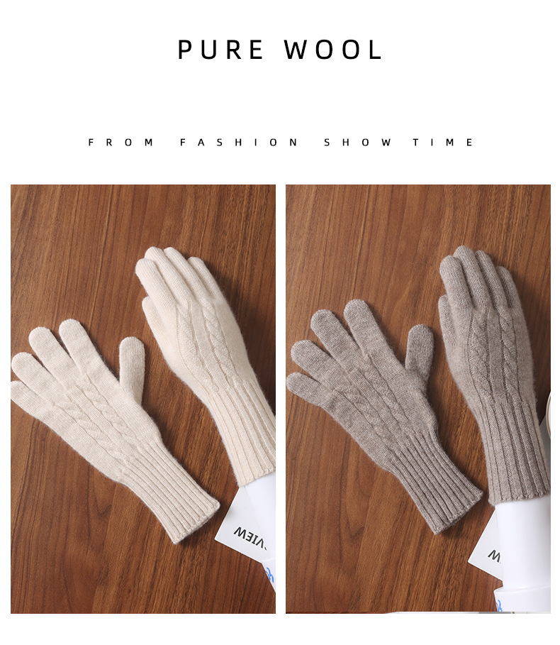 100 울 니트 트위스트 터치 스크린 긴 손목 브래지어 야외 사이클링 통근 손가락 따뜻한 터치 스크린 캐시미어 장갑