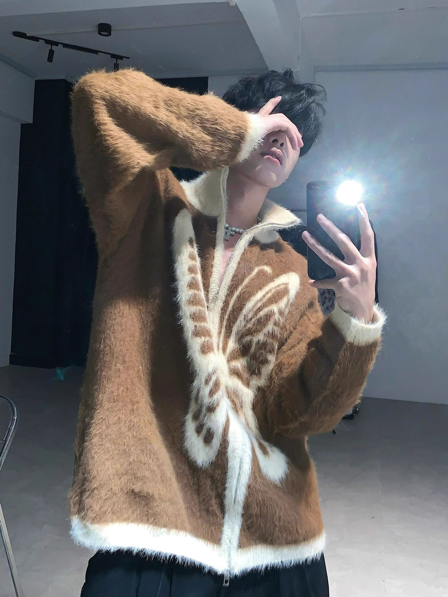 미국 빈티지 틈새 나비 인쇄 봉제 칼라 스웨터 남성 가을과 겨울 따뜻한 니트 카디건 게으른 울 재킷