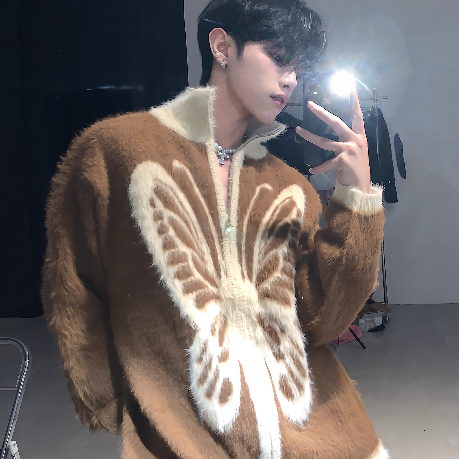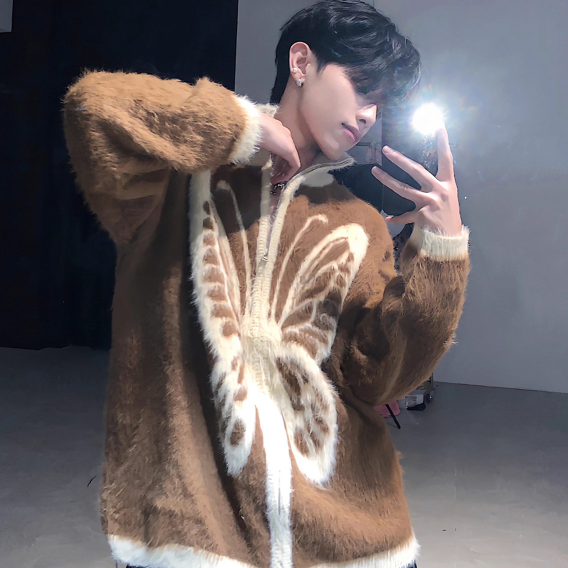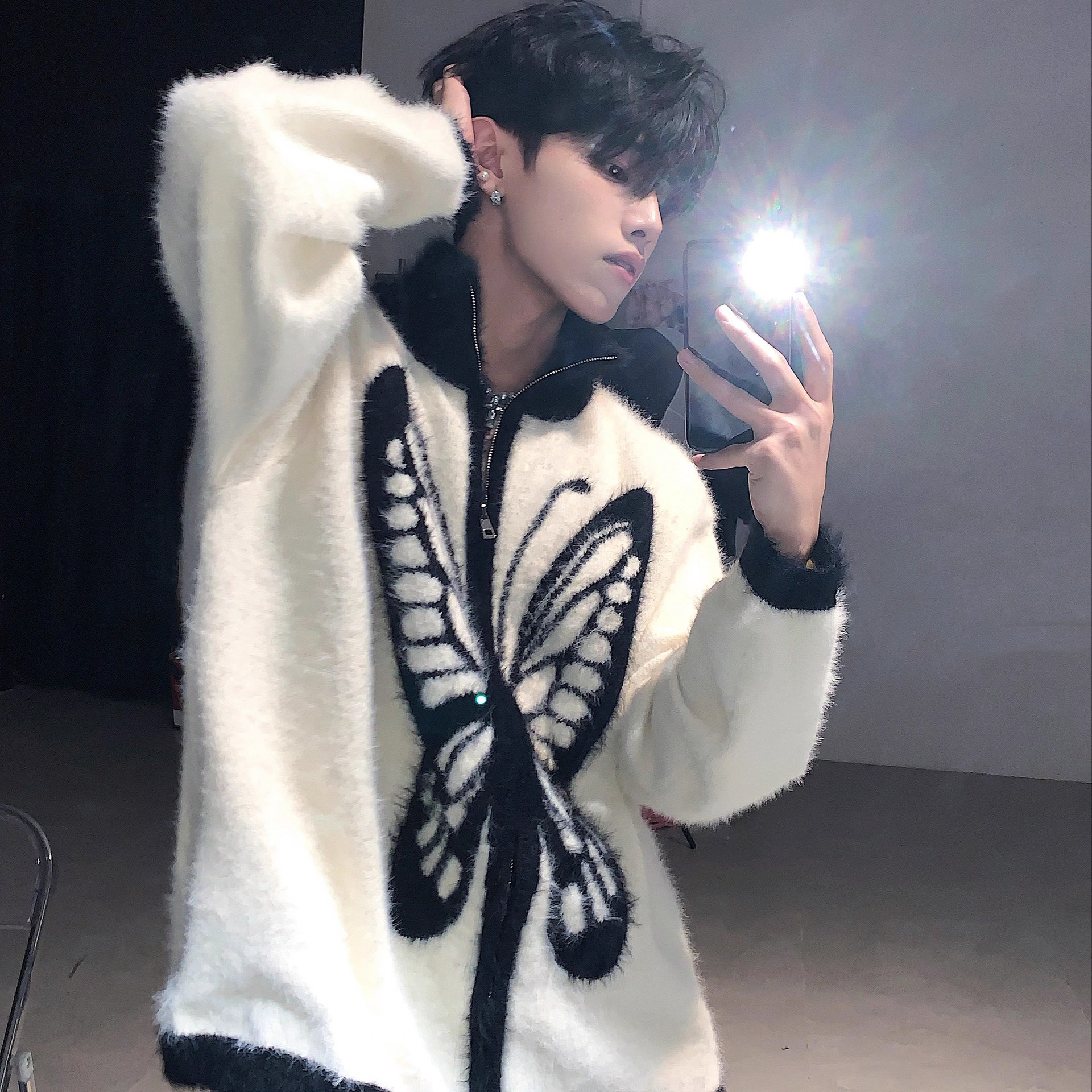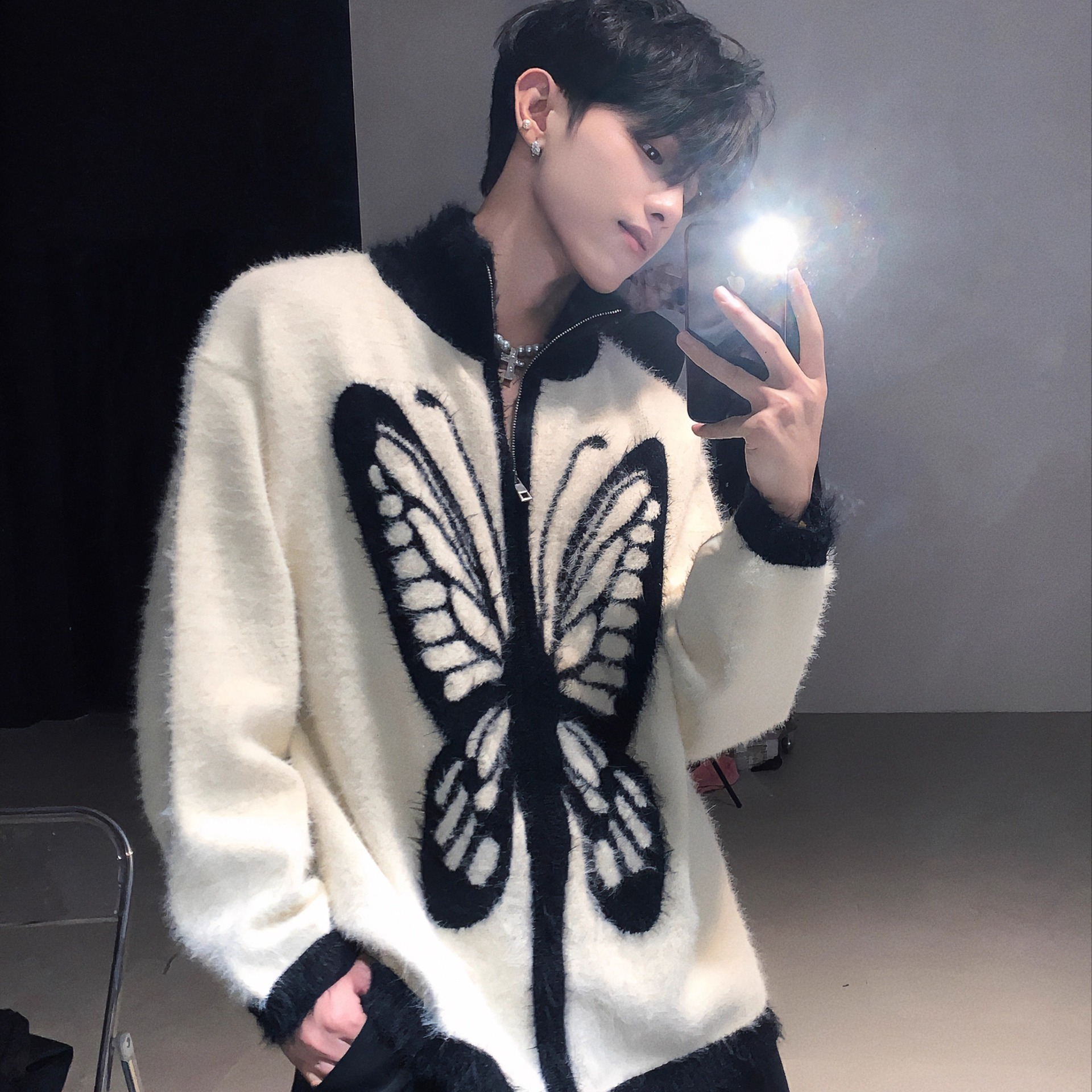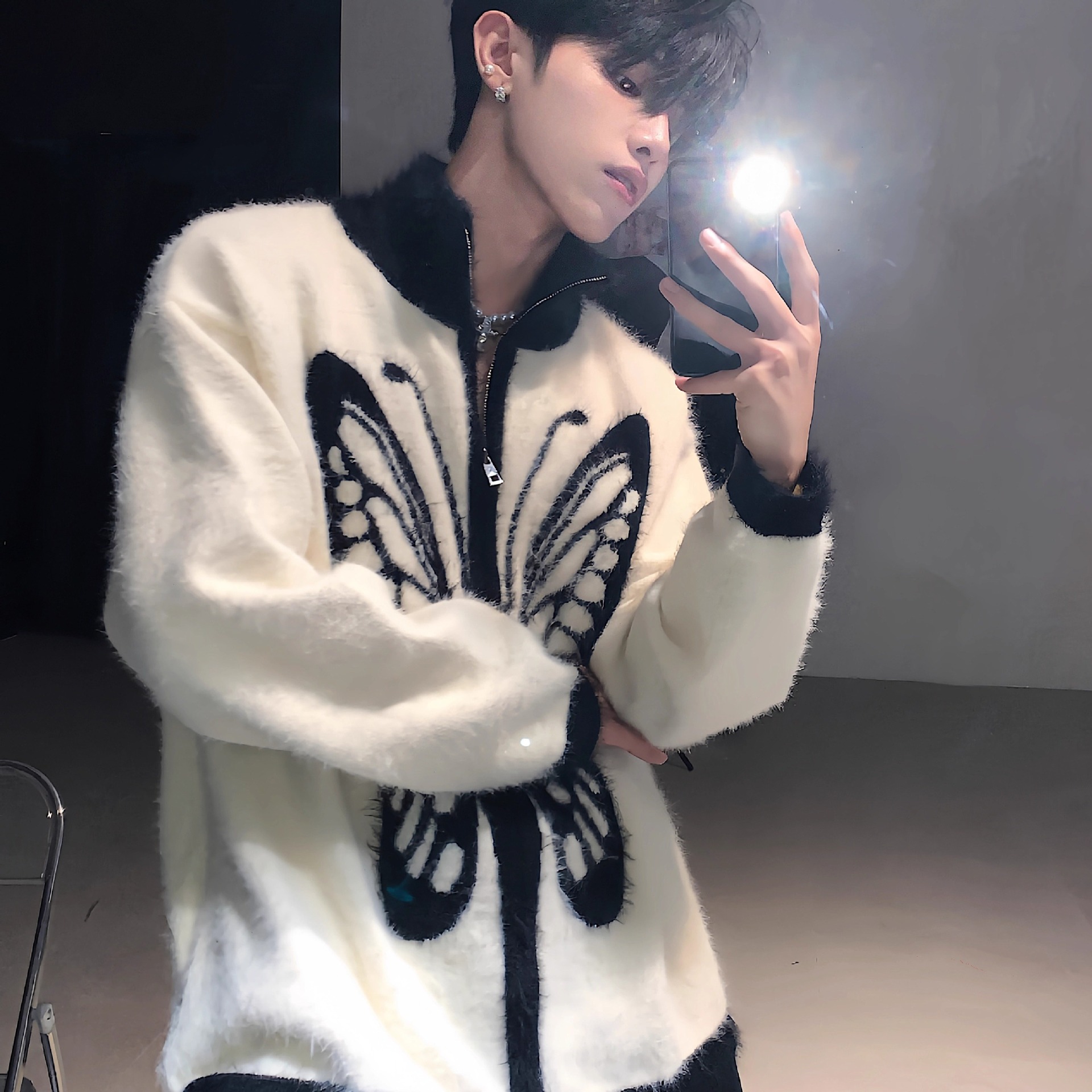 미국 빈티지 틈새 나비 인쇄 봉제 칼라 스웨터 남성 가을과 겨울 따뜻한 니트 카디건 게으른 울 재킷스토어 가기