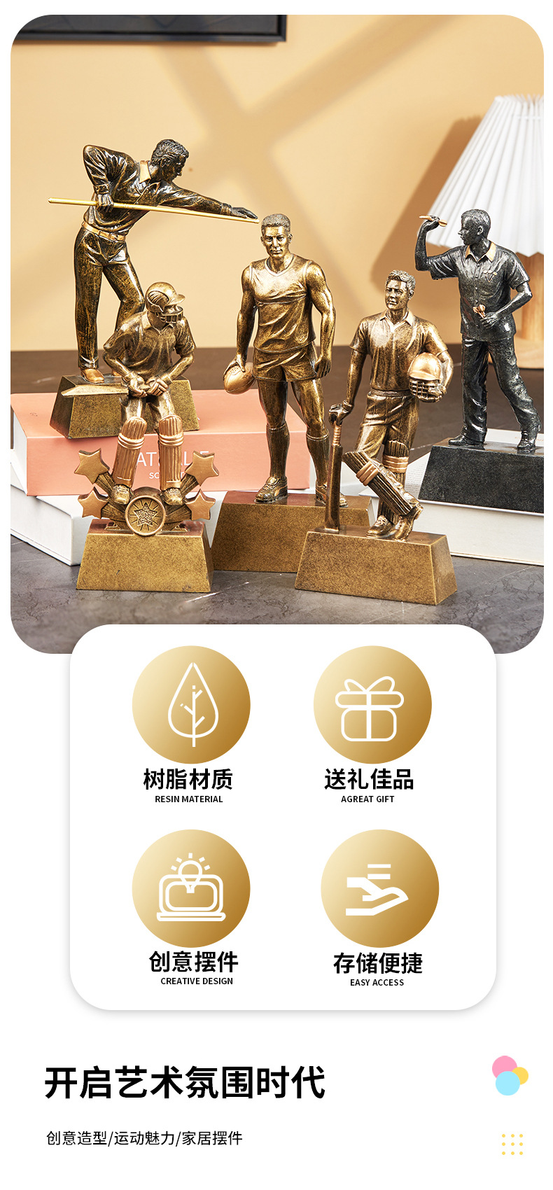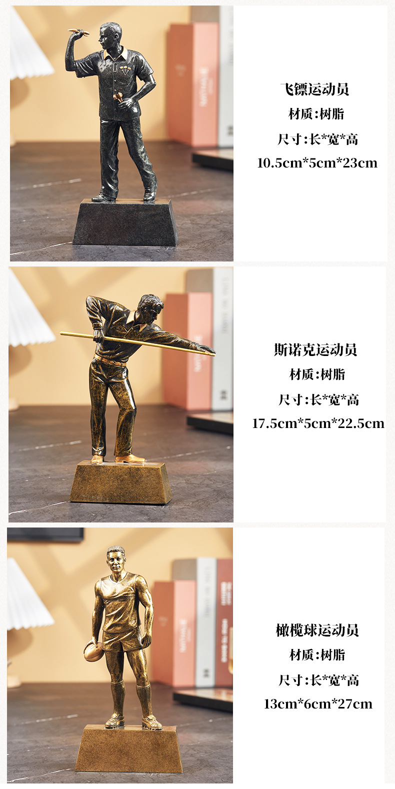 새로운 미국 스포츠 캐릭터 수지 장식품 조각 와인 내각 TV 내각 사무실 데스크탑 장식 트로피