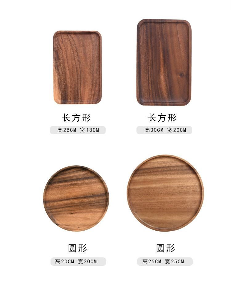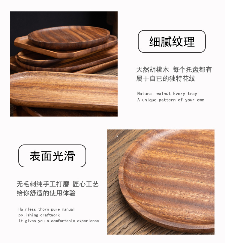 월넛 트레이 솔리드 우드 직사각형 가정용 과일 디저트 디너 플레이트 티 컵 매트 일본식 디스크 드라이 버블 플레이트 티 트레이