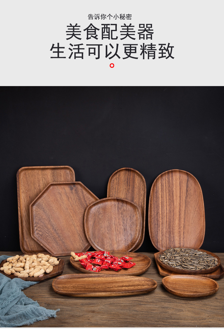 월넛 트레이 솔리드 우드 직사각형 가정용 과일 디저트 디너 플레이트 티 컵 매트 일본식 디스크 드라이 버블 플레이트 티 트레이스토어 가기