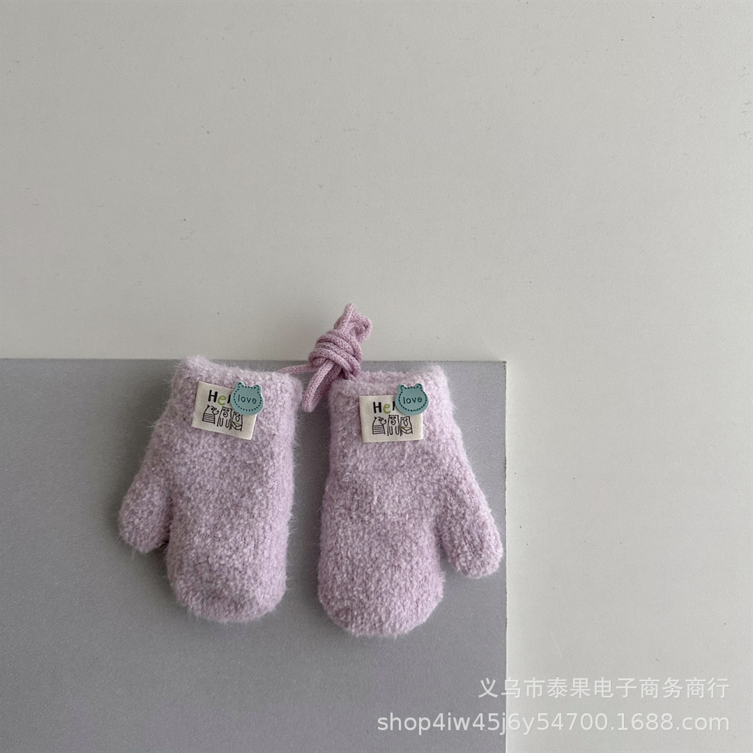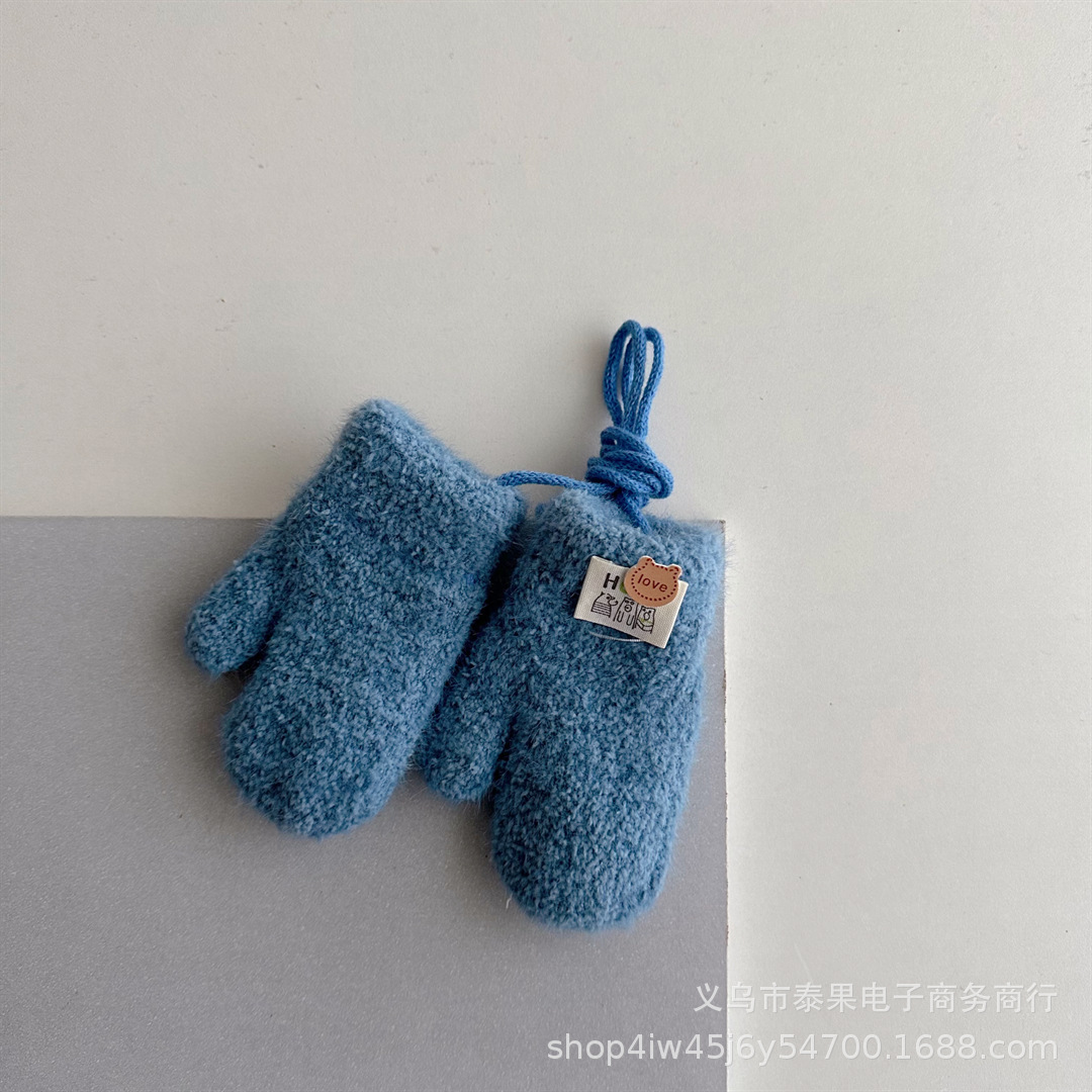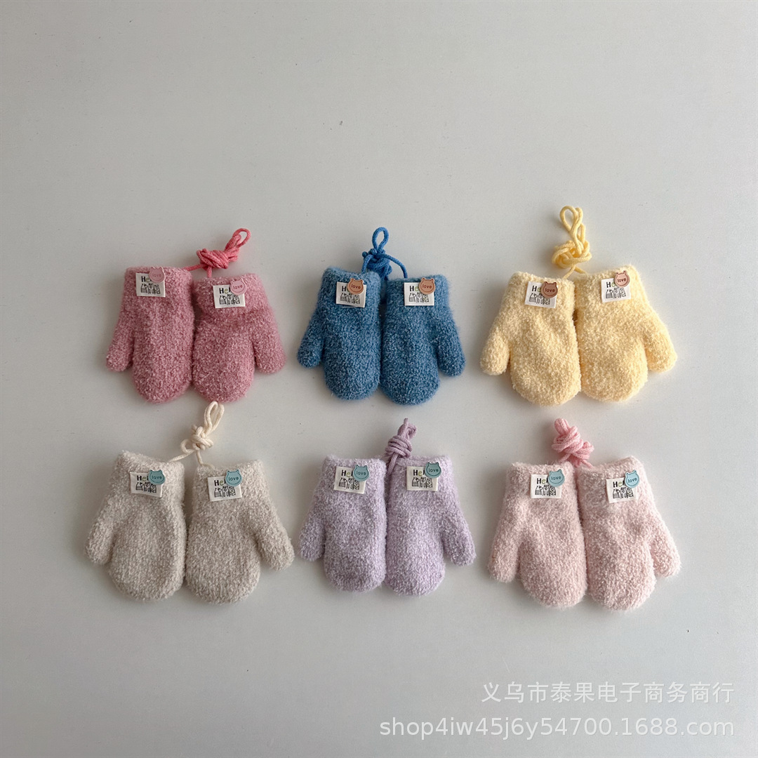 한국식 귀여운 아기 겨울 두꺼운 따뜻한 장갑 더블 레이어 기모 목 교수형 장갑 솔리드 컬러 소프트 왁스 장갑