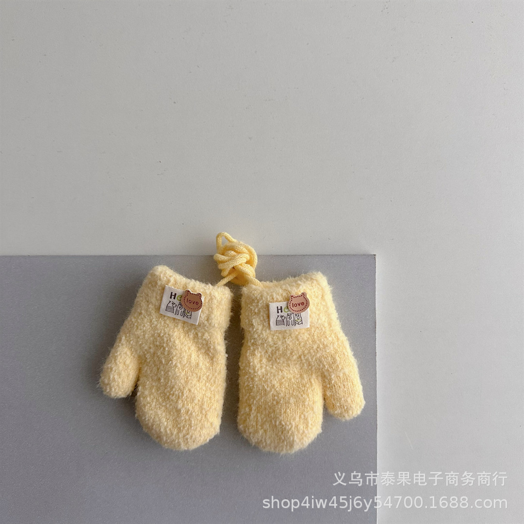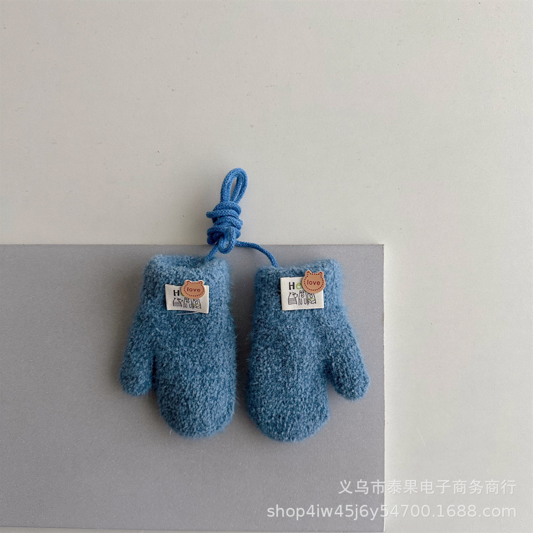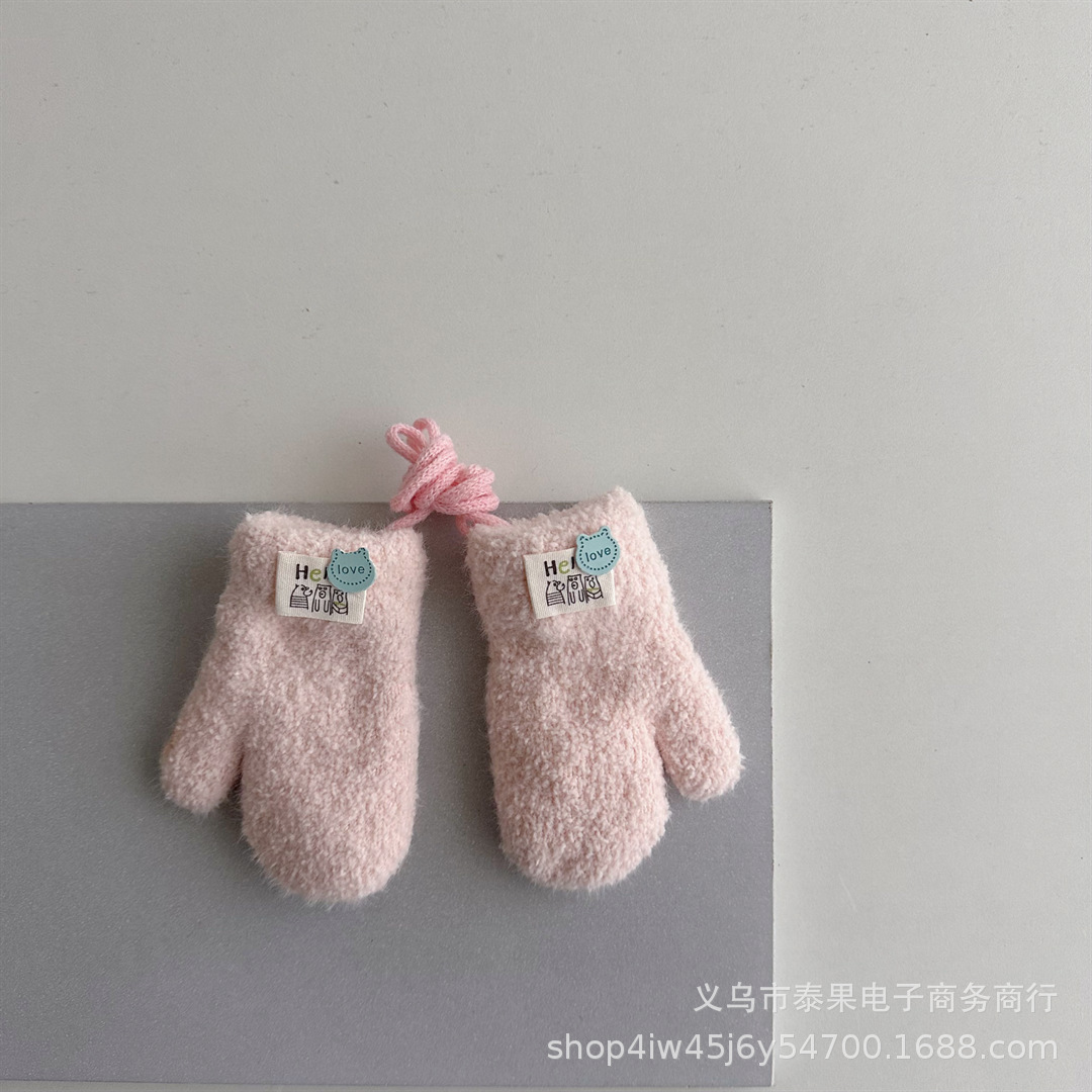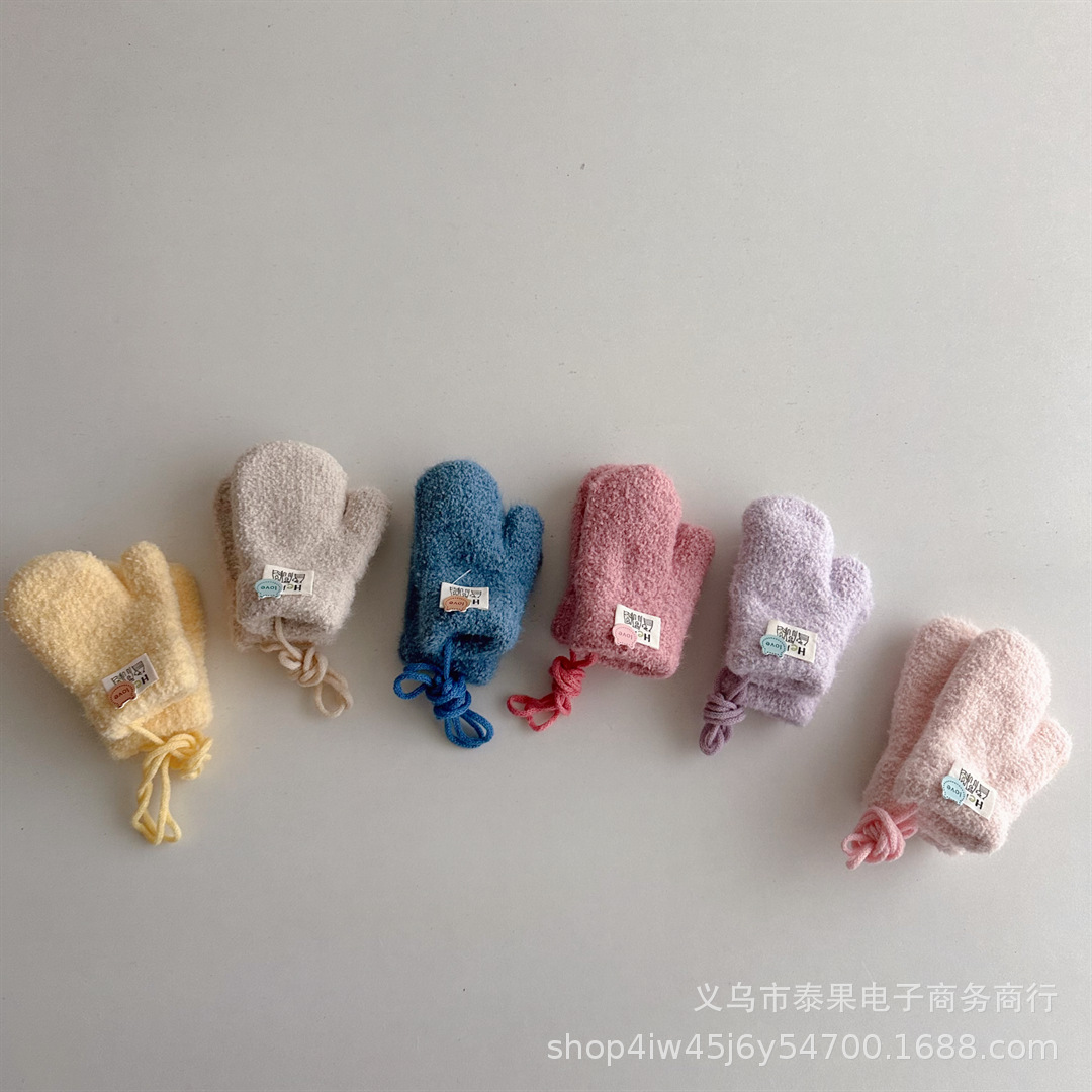 한국식 귀여운 아기 겨울 두꺼운 따뜻한 장갑 더블 레이어 기모 목 교수형 장갑 솔리드 컬러 소프트 왁스 장갑