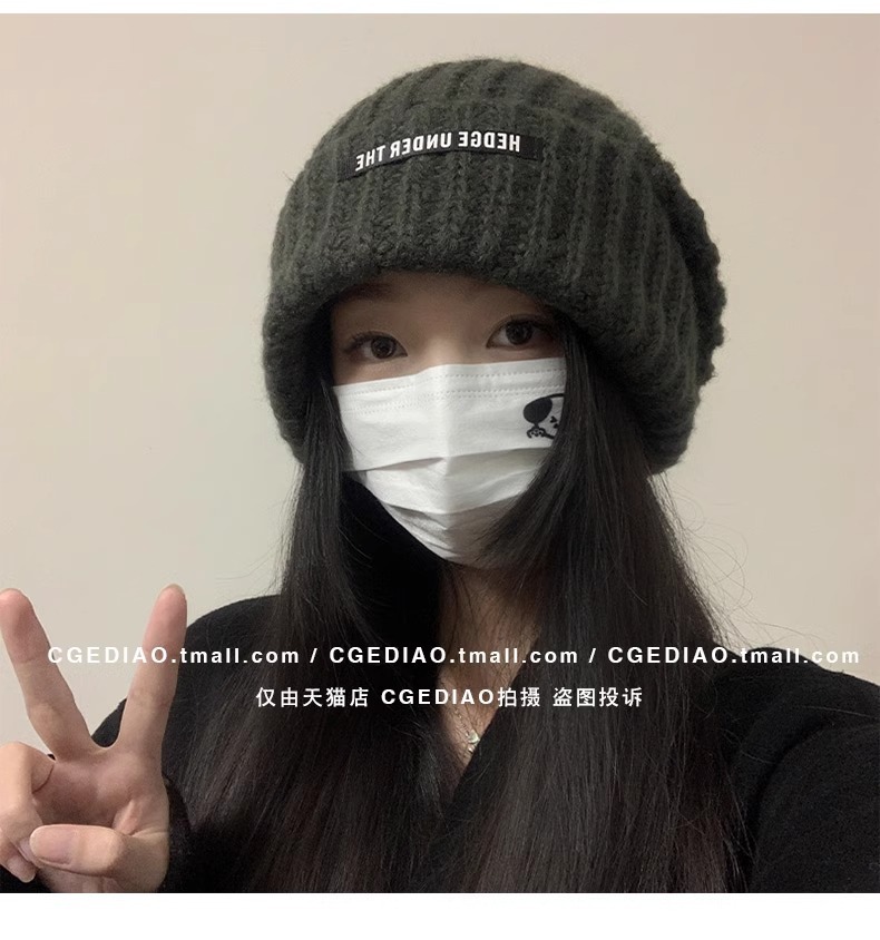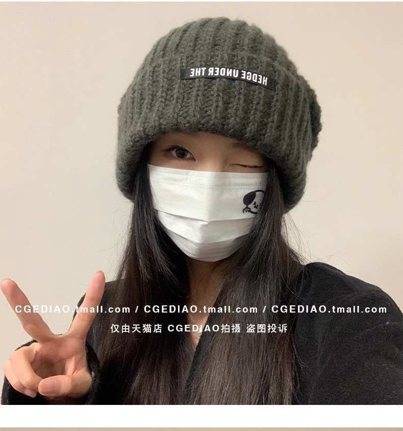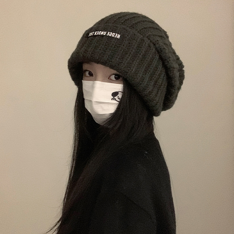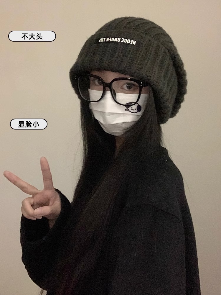 큰 머리 양모 모자 여성의 2024 년 가을과 겨울 새로운 따뜻한 얼굴 작은 니트 힙 올 매치 귀 보호 콜드 햇스토어 가기