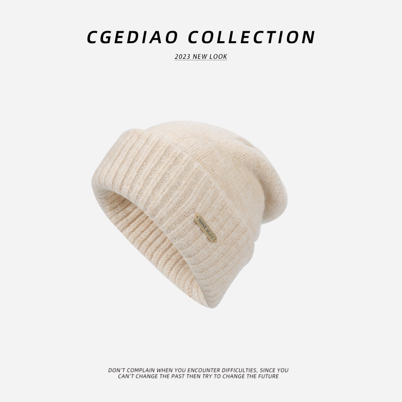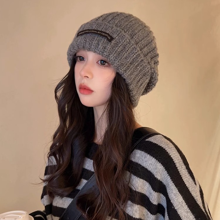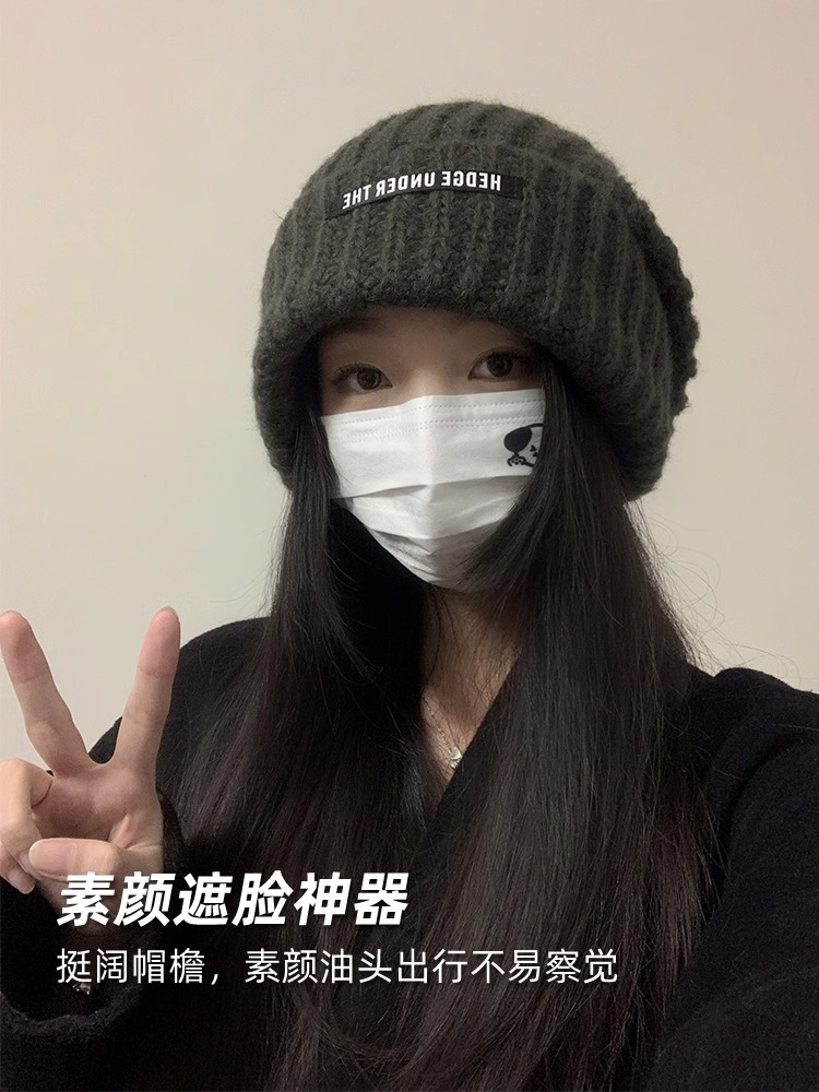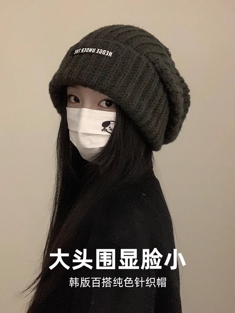 큰 머리 양모 모자 여성의 2024 년 가을과 겨울 새로운 따뜻한 얼굴 작은 니트 힙 올 매치 귀 보호 콜드 햇