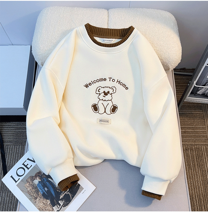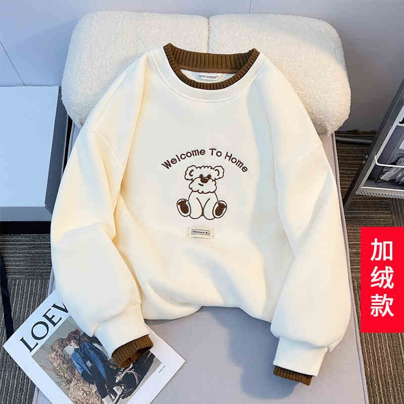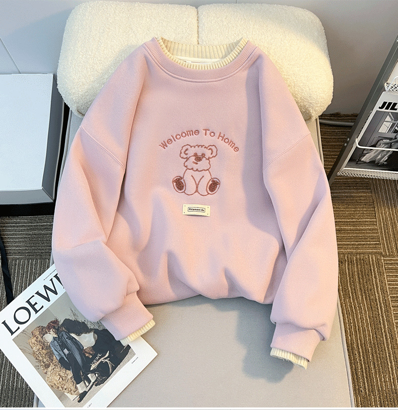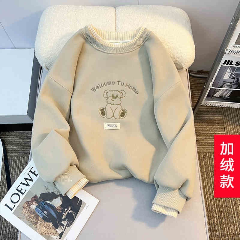 여아용 스웨트셔츠 가을 겨울 2025 신상 투피스 스타일 봄옷 자수 만화 캐릭터 여아용 플리스 탑스토어 가기