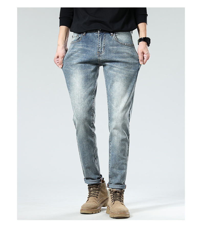 유럽과 미국의 브랜드 청바지 남성 한국 스타일 슬림 작은 발 국경 대외 무역 고품질 유럽 제품 탄성 세척 1:1 바지