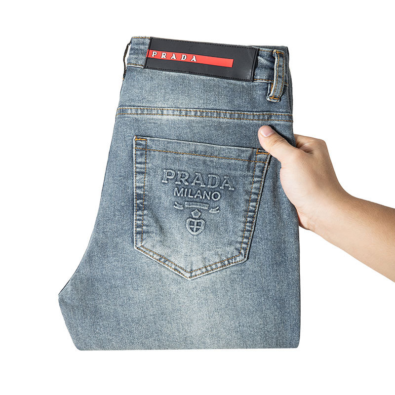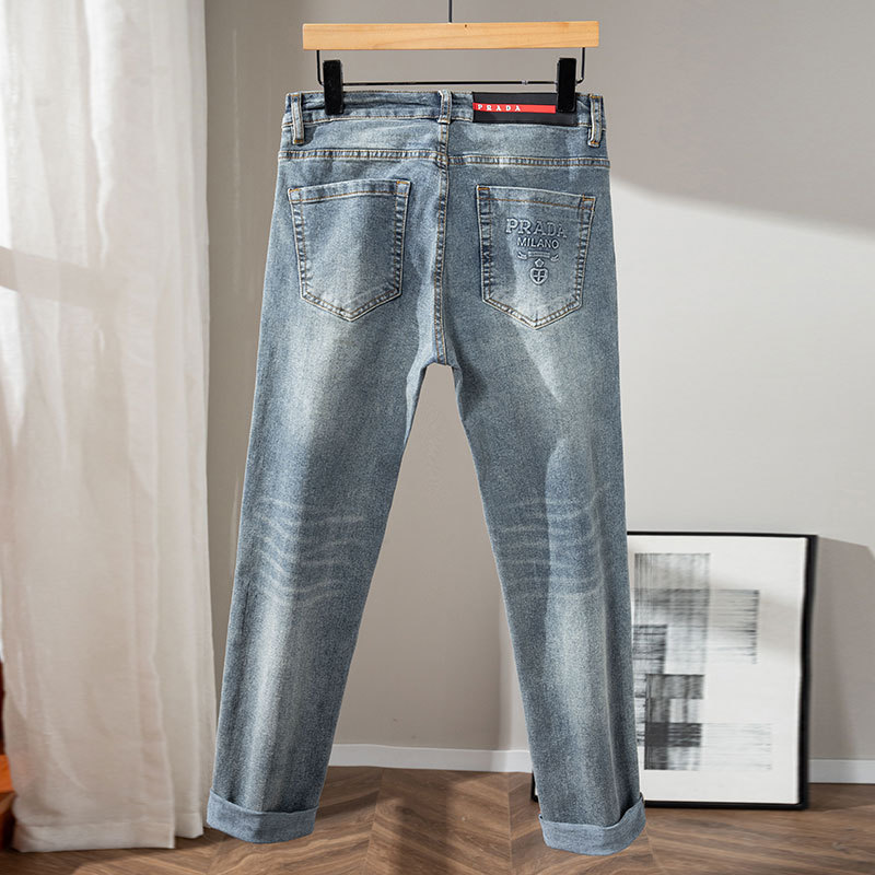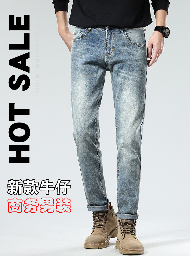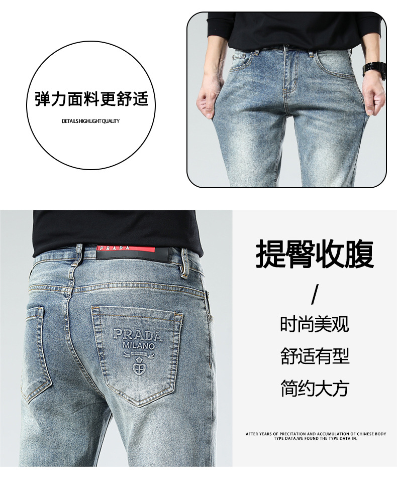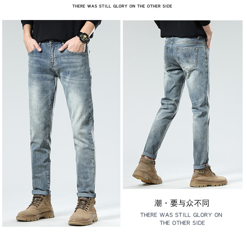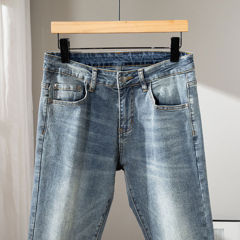유럽과 미국의 브랜드 청바지 남성 한국 스타일 슬림 작은 발 국경 대외 무역 고품질 유럽 제품 탄성 세척 1:1 바지스토어 가기