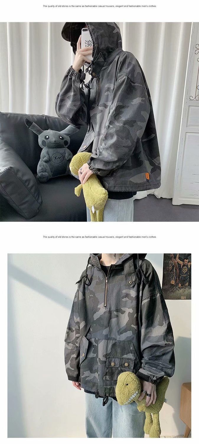 튀긴 거리 더피 잘 생긴 위장 충전 의류 작업복 재킷 남성 트렌디 브랜드 후드 자켓 봄과 가을 인터넷 연예인 힙합 기능성 핸들