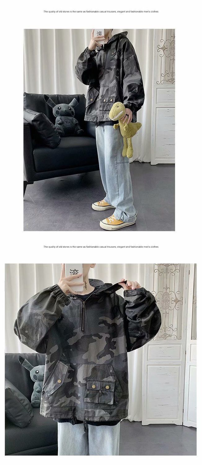 튀긴 거리 더피 잘 생긴 위장 충전 의류 작업복 재킷 남성 트렌디 브랜드 후드 자켓 봄과 가을 인터넷 연예인 힙합 기능성 핸들스토어 가기