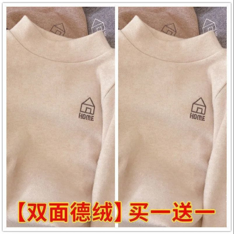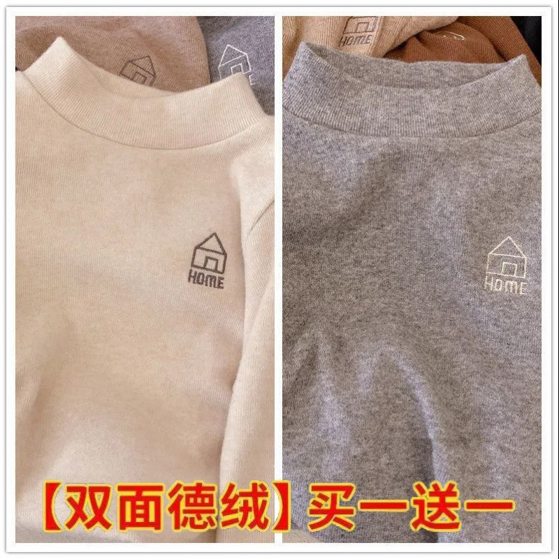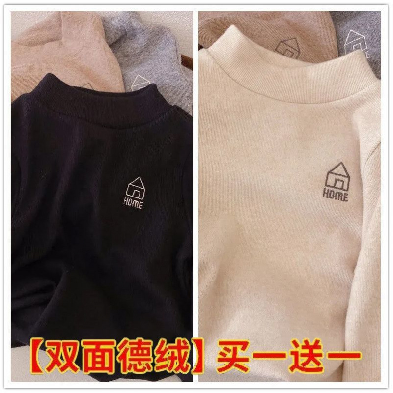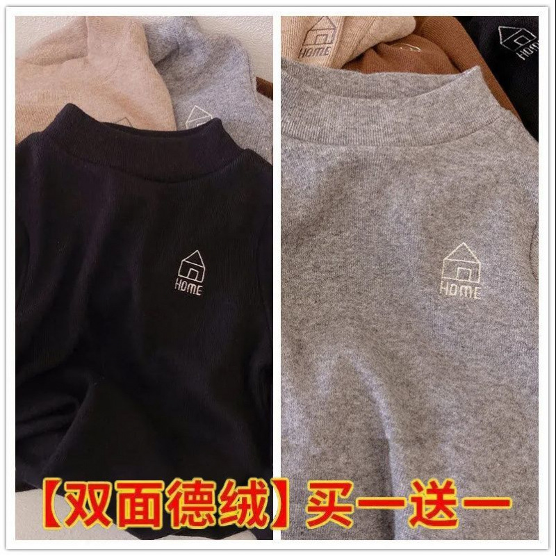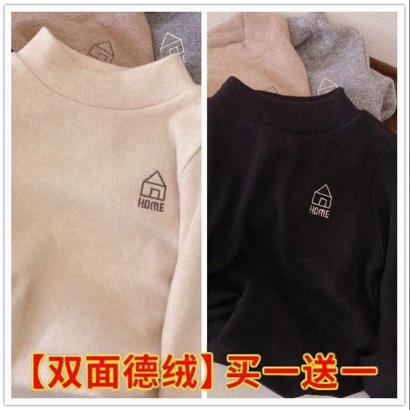 어린이 벨벳베이스 셔츠 가을과 겨울 어린이 반 높이 칼라 따뜻한 내면의 아기의 최고 소년 소녀상 긴 소매 티셔츠스토어 가기