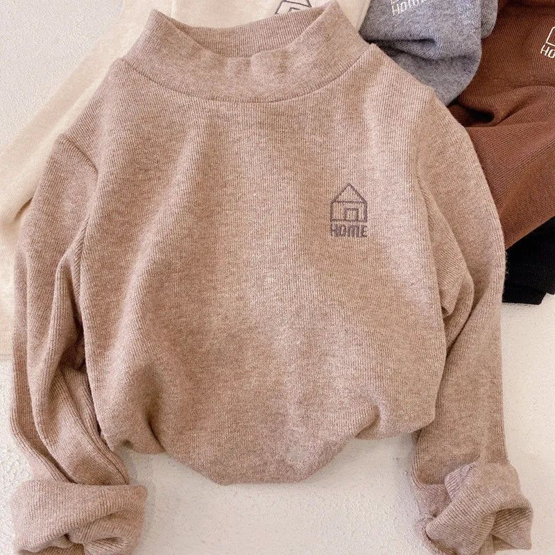 어린이 벨벳베이스 셔츠 가을과 겨울 어린이 반 높이 칼라 따뜻한 내면의 아기의 최고 소년 소녀상 긴 소매 티셔츠