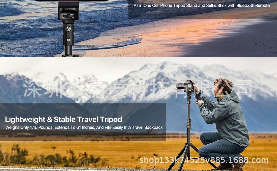 • 삼각대 + 휴대폰 태블릿 홀더 + 블루투스