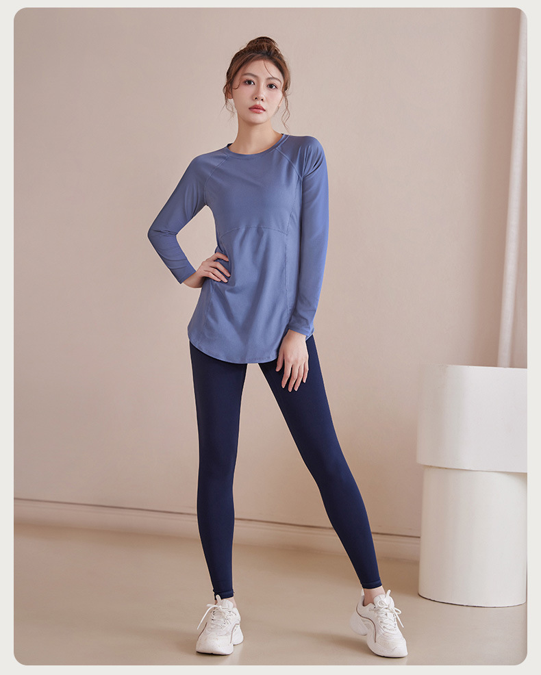 새로운 플러스 사이즈 느슨한 빠른 건조 최고 긴팔 여성 통통녀 슬리밍 스포츠 달리기 피트니스 요가 세트스토어 가기