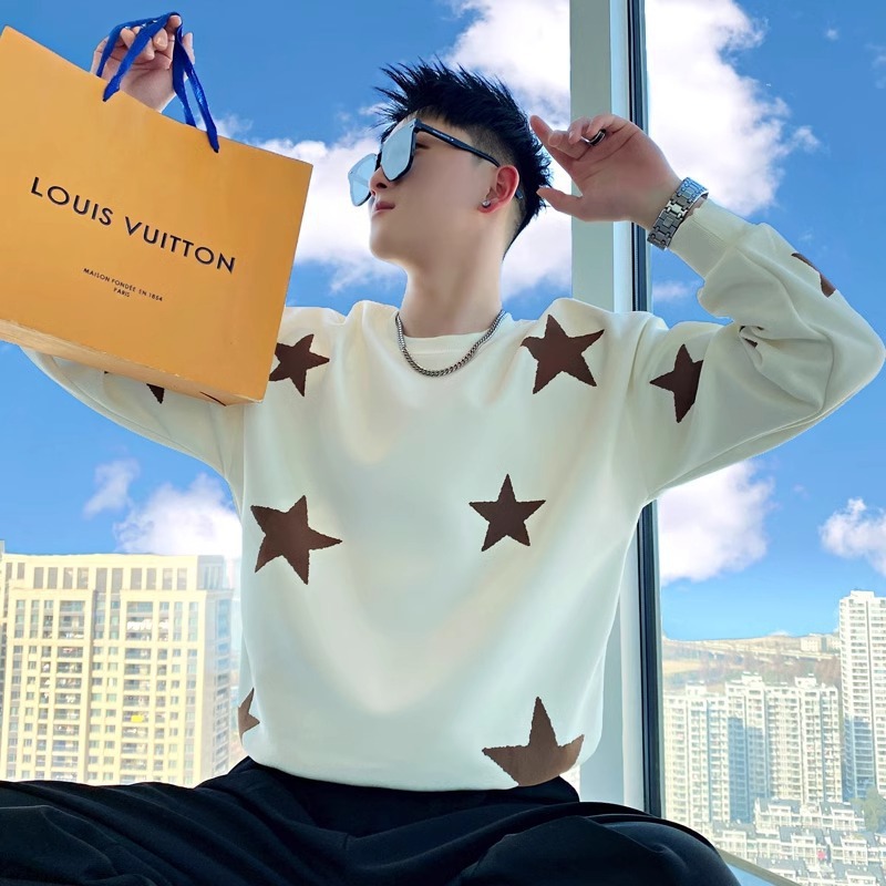 온통 하늘 스타 스웨터 남성 패션 브랜드 프린트 티셔츠 봄과 가을 새로운 남성 최고 긴팔 티셔츠 잘 생긴 캐주얼 코트스토어 가기