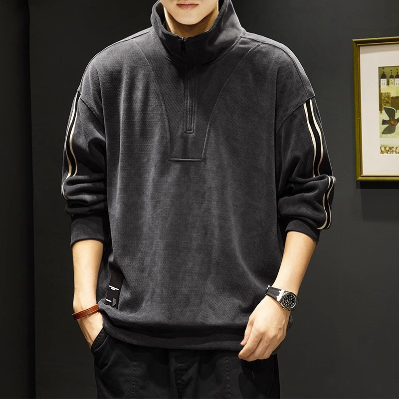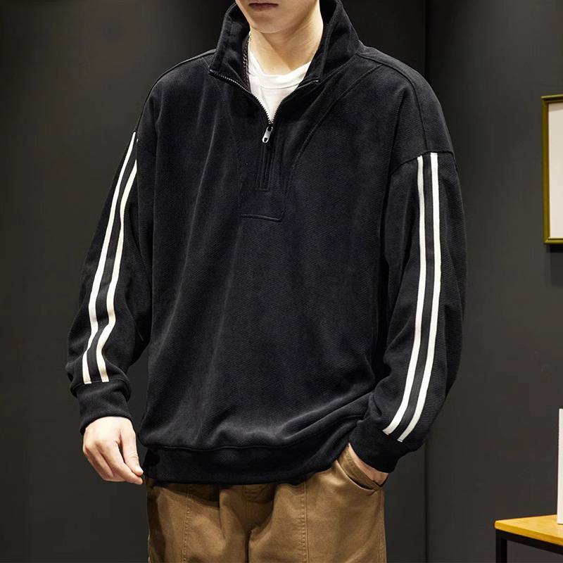 질감 컬러 매칭 스웨터 남자 봄과 가을 2024 새로운 하프 지퍼 칼라베이스 셔츠 느슨한 긴팔 재킷