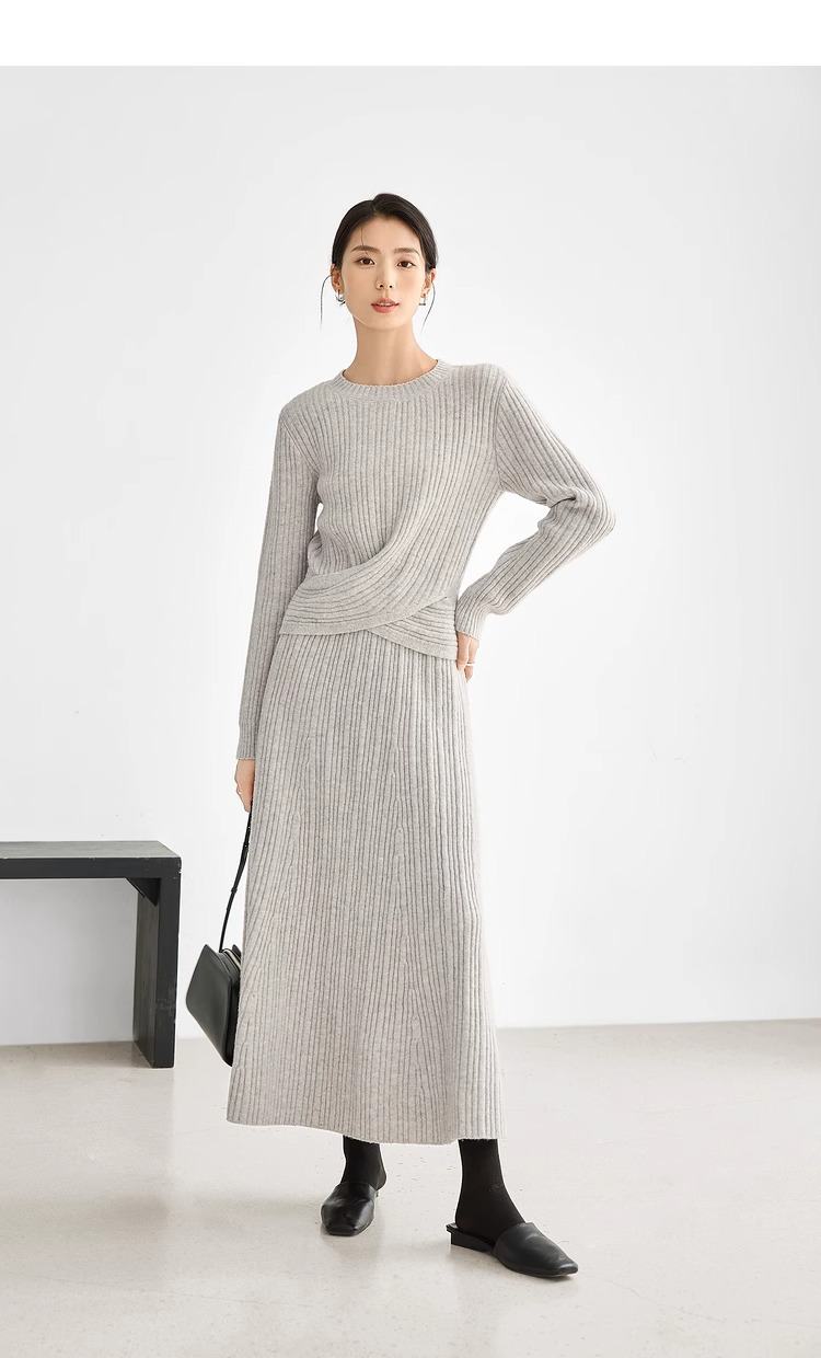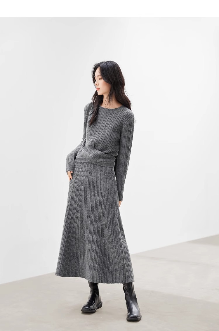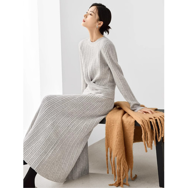 7588 프랑스 기질 니트 원피스 여성 2024 년 겨울 새 밍크 디자인 스웨터 스커트 투피스 세트