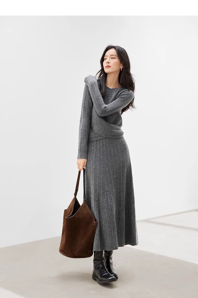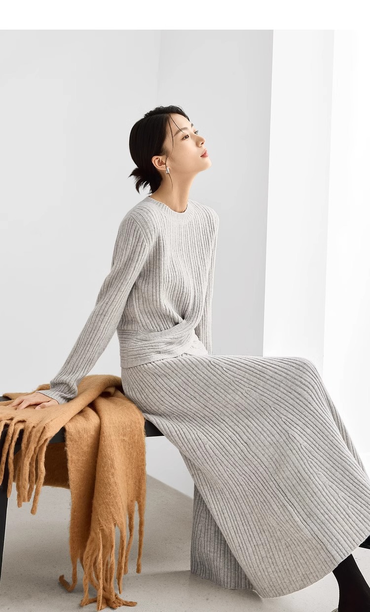7588 프랑스 기질 니트 원피스 여성 2024 년 겨울 새 밍크 디자인 스웨터 스커트 투피스 세트스토어 가기