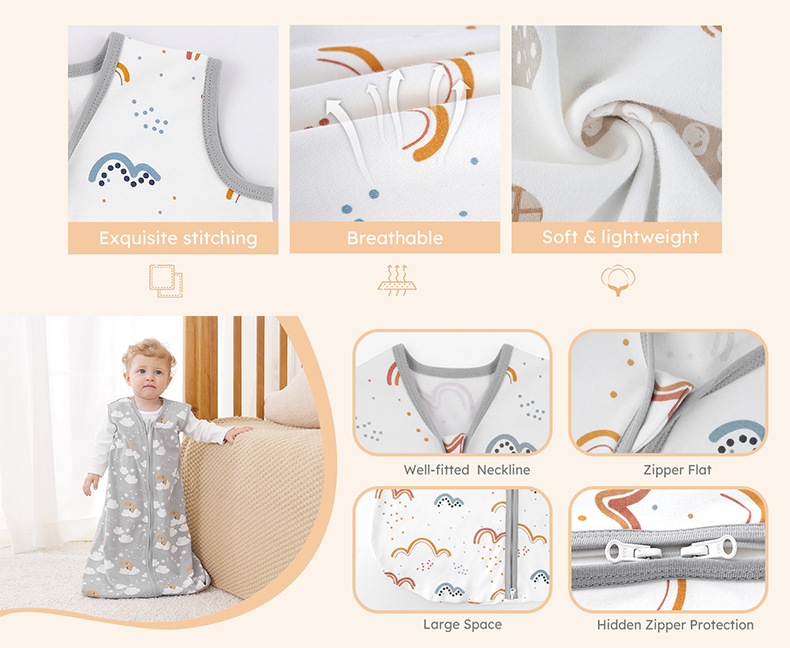 맞춤형 아마존 해외 배송 유아용 침낭 A급 순면 여름 아동용 올인원 포대기 조끼 방수 이불